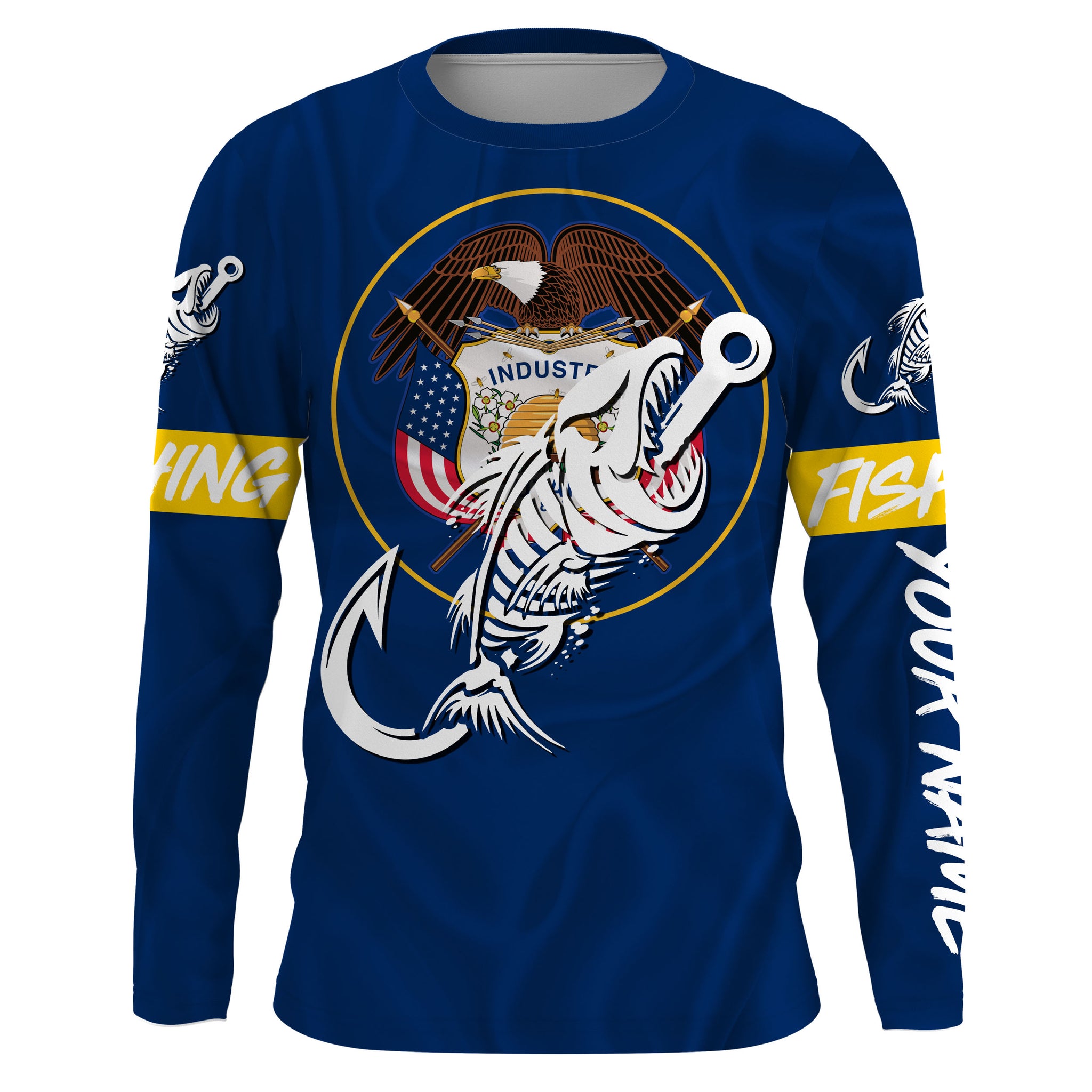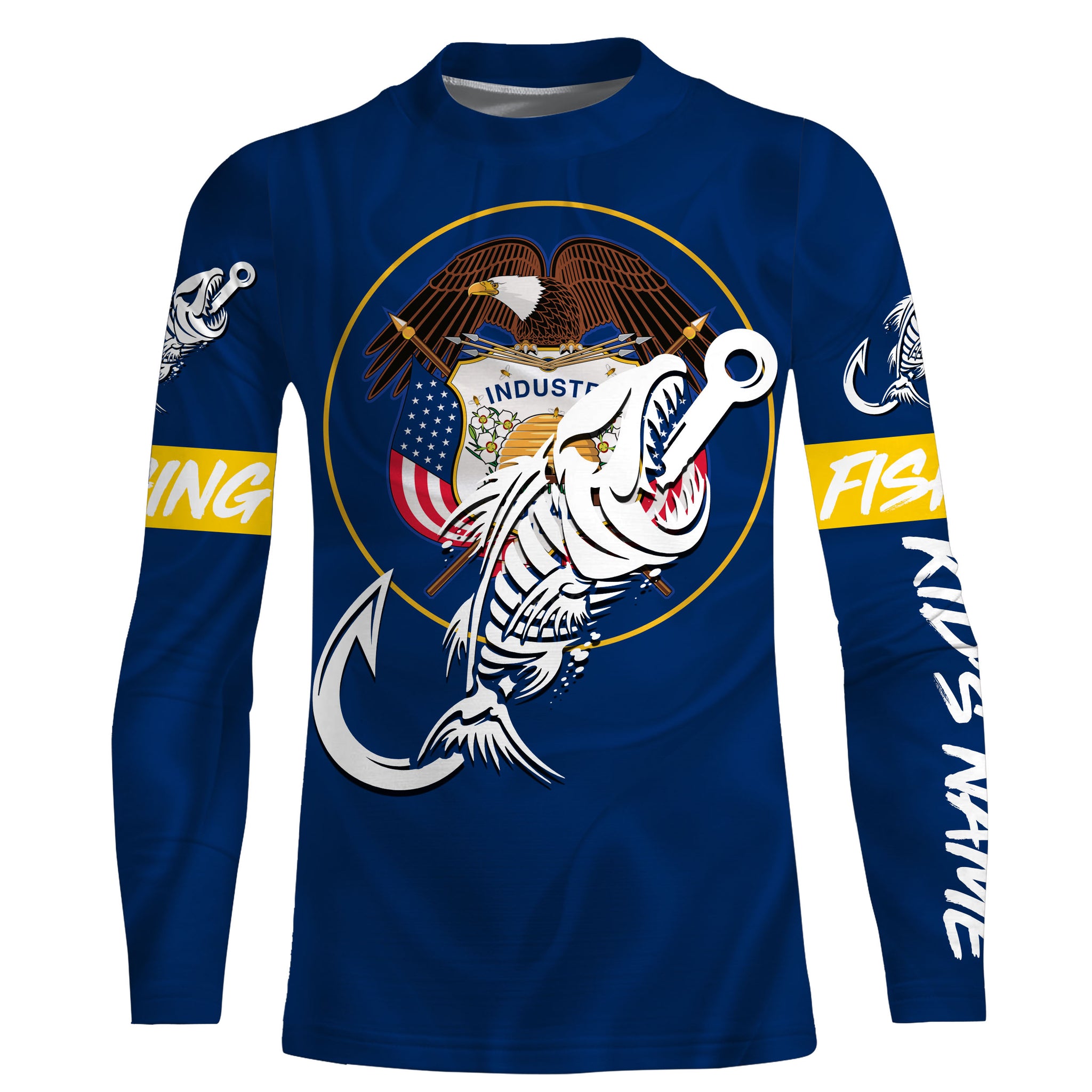 UT Utah Fishing Flag Fish hook skull Custom sun protection fishing shirts for men, women, kid NQS3407