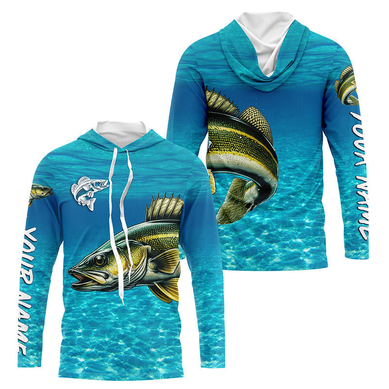 Walleye fishing blue water camo Custom sun protection long sleeve fishing shirt for men, women NQS8438