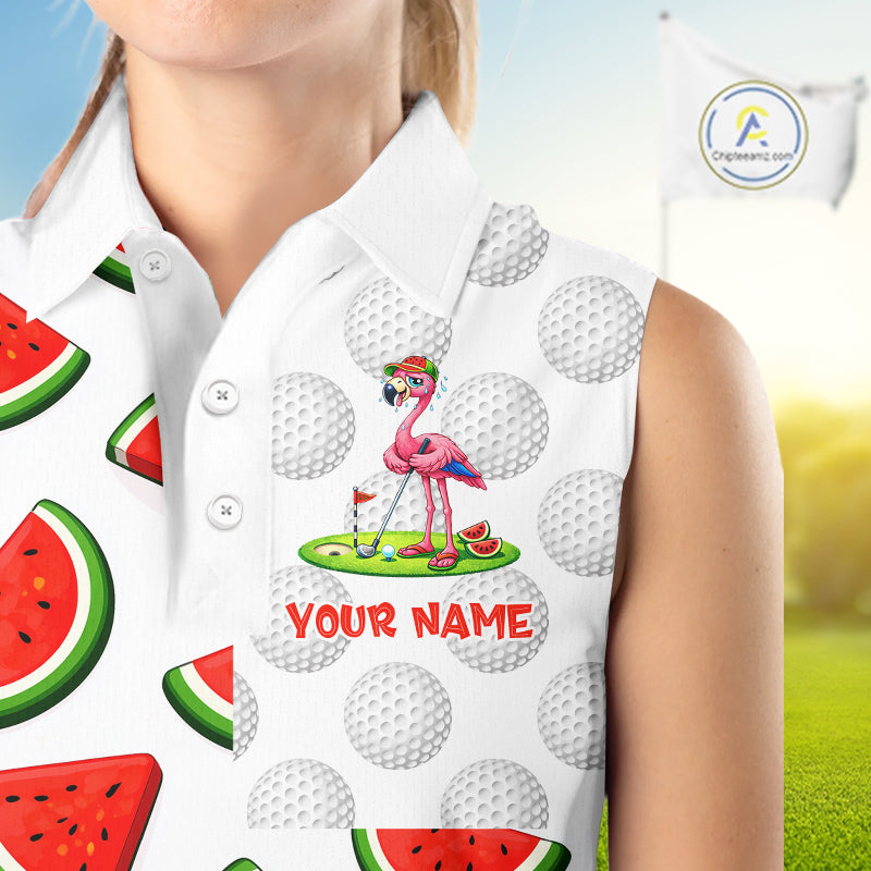 Funny Watermelon Womens Sleeveless Golf Polo Shirts Custom Funny Golfing Flamingo Golf Shirts NYN2882