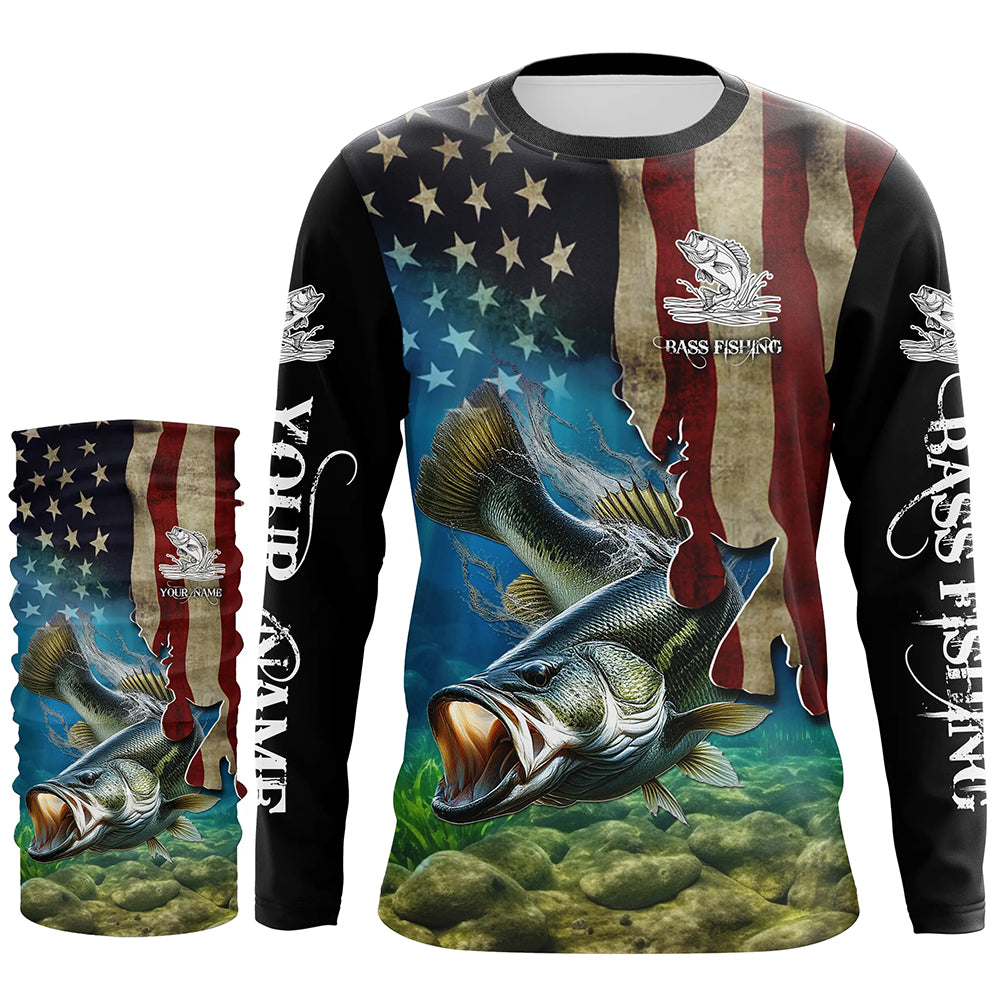 Largemouth Bass Fishing 3D American Flag Patriotic Customize name fishing shirts NQS432