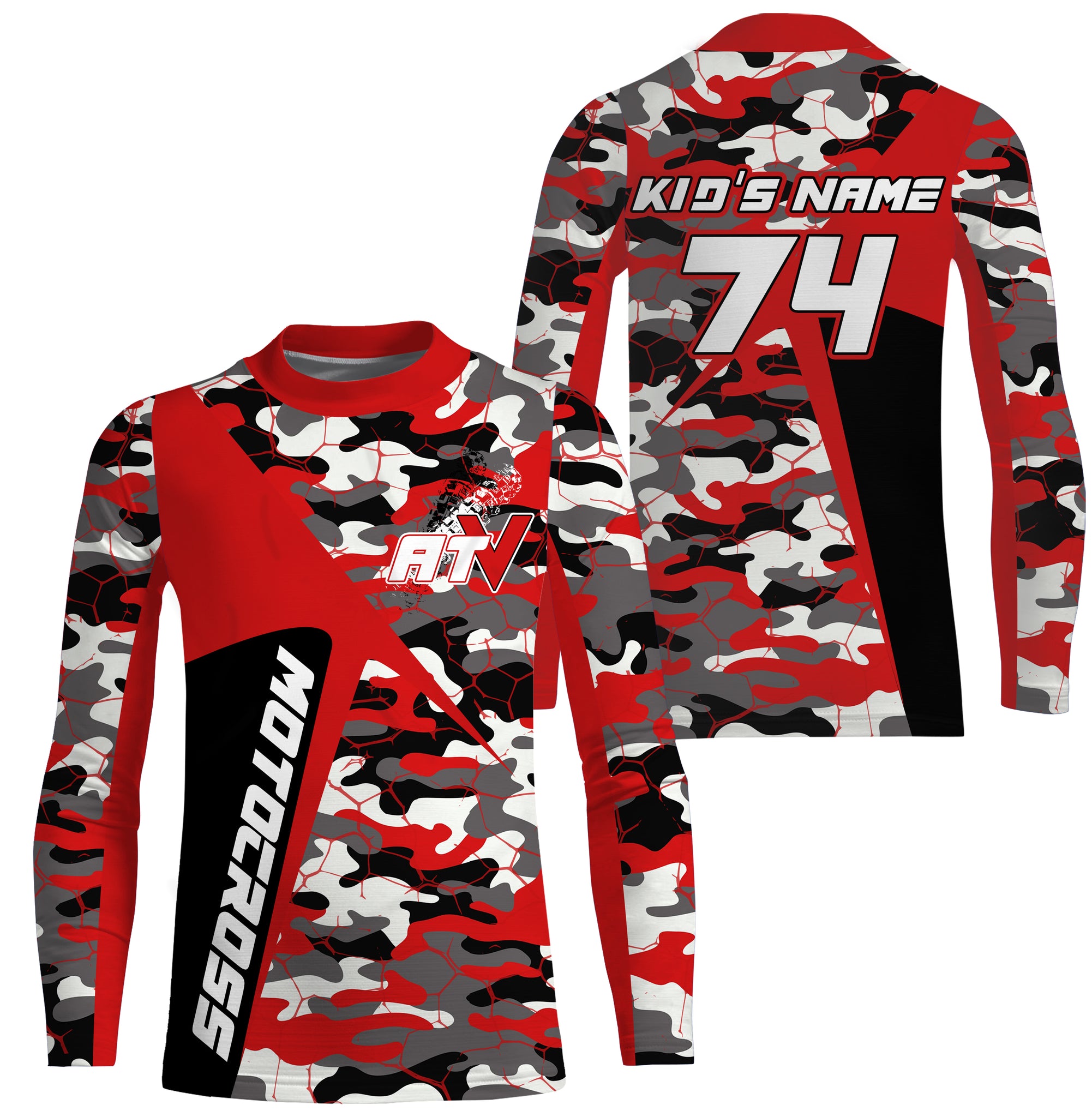 ATV Motocross Jersey Red Camo UPF30+ Custom Adult Youth Quad Bike Off-Road Jersey ATV MX Shirt PDT644