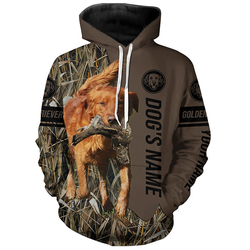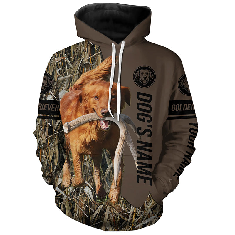 Red Golden Retriever Hunting dog customized Name Shirt, camo and brown color FSD4680