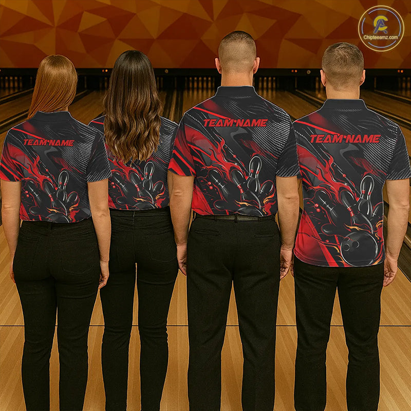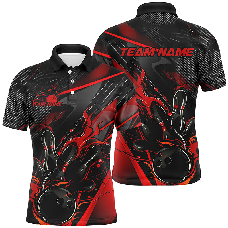 Black And Red Custom Flame Bowling Shirts For Men, Fire Bowling Team Shirt Bowler Jersey IPHW7931