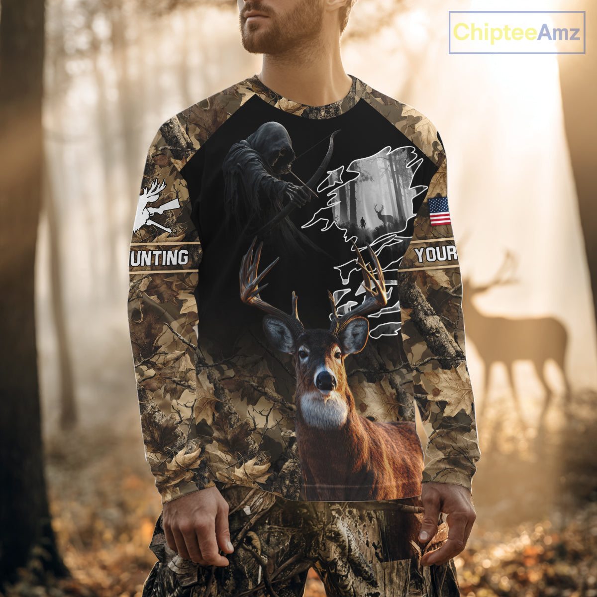Personalized Deer Hunting Hoodie/ Long sleeves Shirts. Designed for deer hunters and outdoor enthusiasts, this shirt blends style, comfort, breathable and funtionality in one. The unique hunting-inspired design can be personalized with your name, along with details like the American flag, camouflage patterns, and more - making it the perfect gift ideas for hunters during deer hunting season.