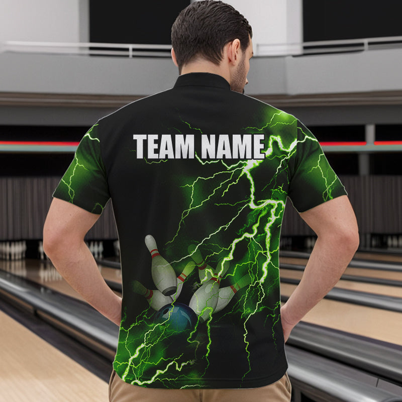 Men's bowling Quarter Zip shirts Custom green lightning thunder Bowling Team Jersey, gift for Bowlers NQS6146