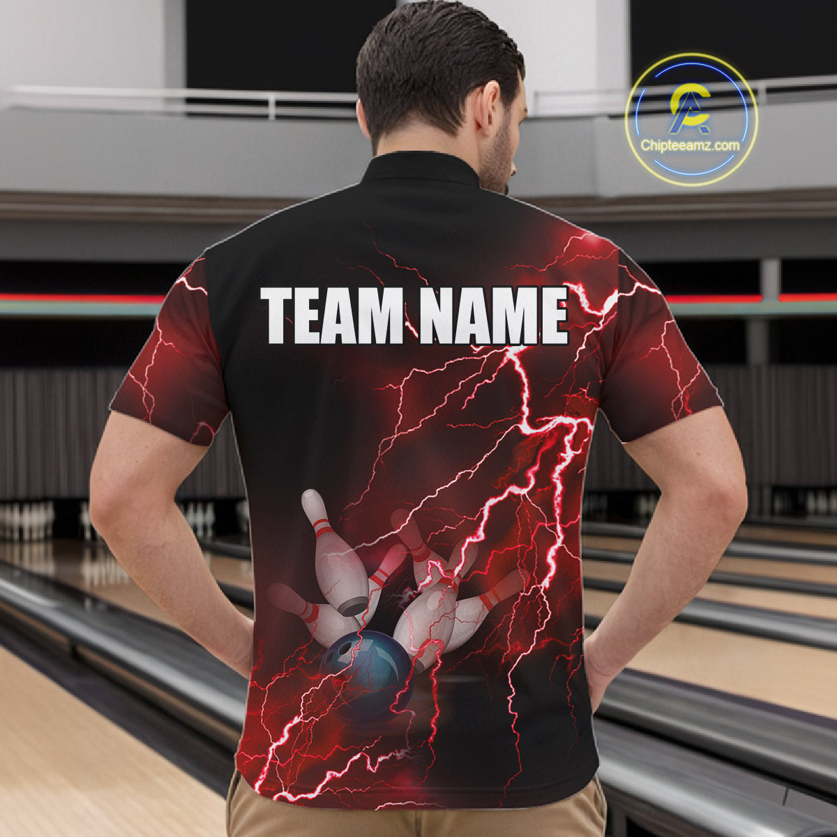 Men's bowling Quarter Zip shirts Custom red lightning thunder Bowling Team Jersey, gift for Bowlers NQS6145
