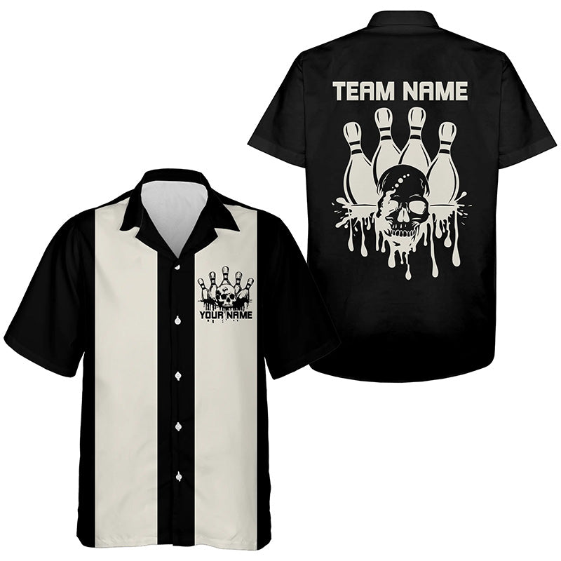 Custom Hawaiian Vintage Bowling Shirts For Men And Women, Skull Tattoo Retro Bowling Shirt For Bowling Team IPHW6595