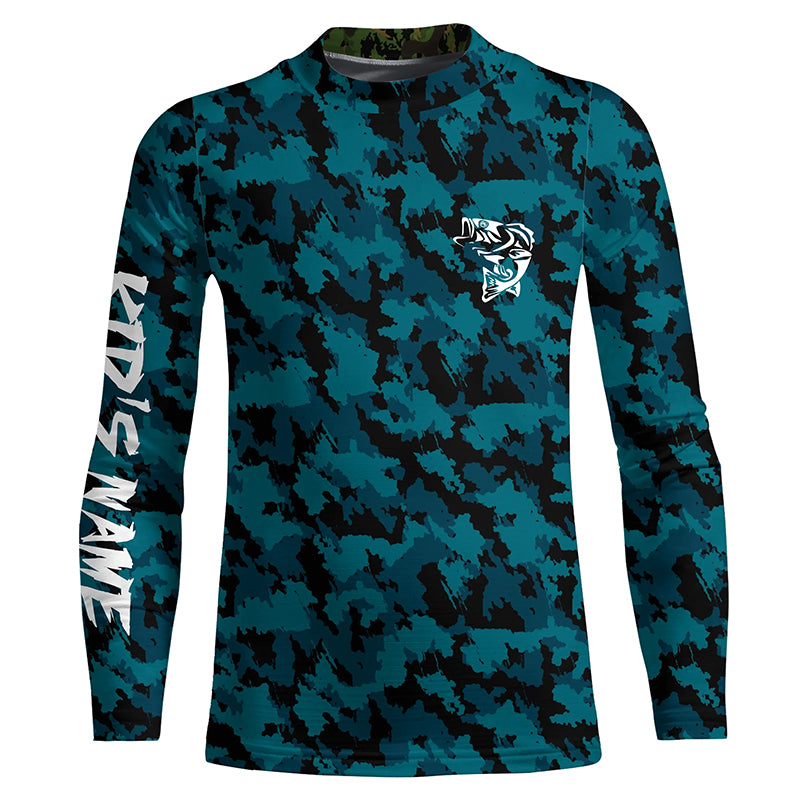 Bass fishing blue camouflage Custom fishing Shirts jersey, camo fishing apparel NQS4934