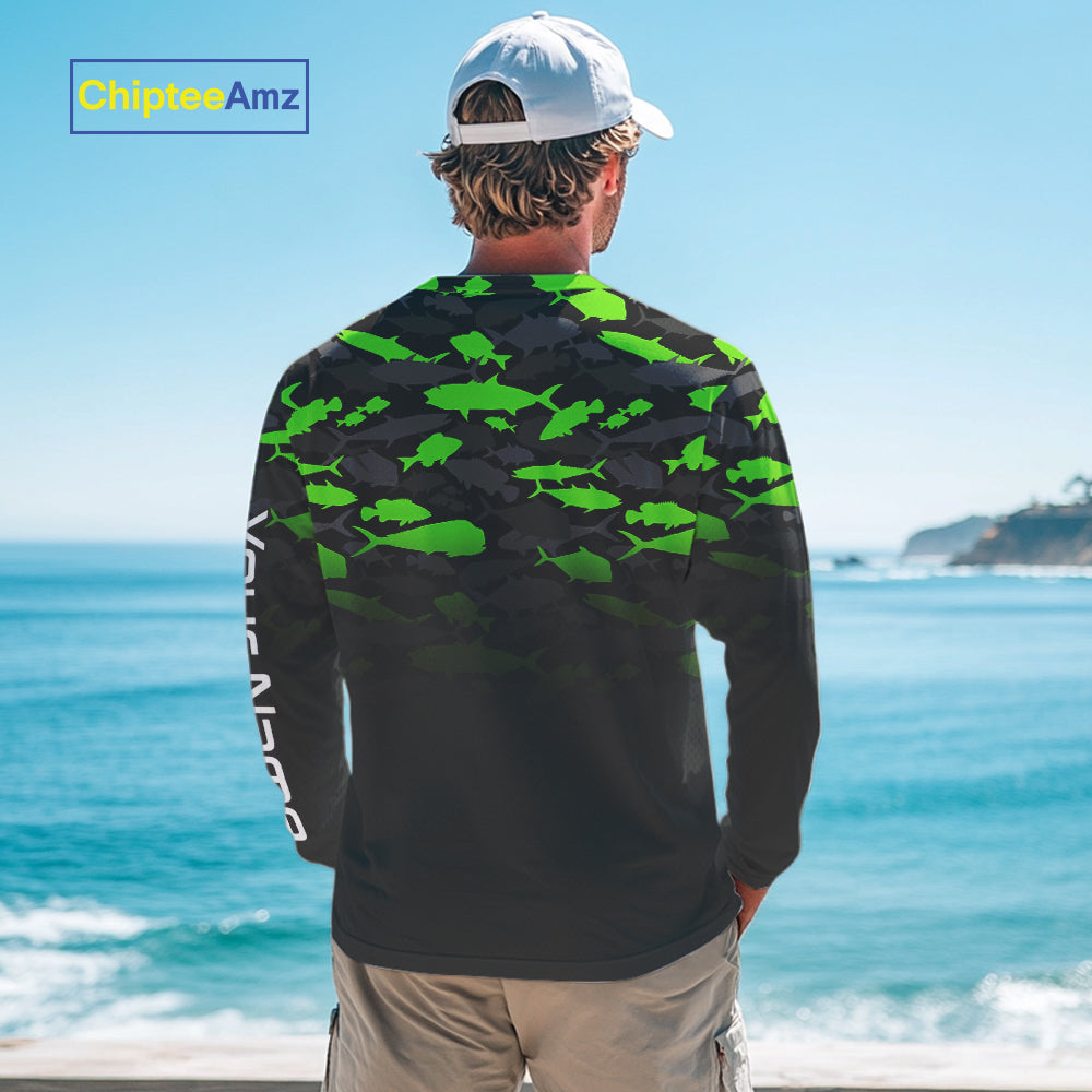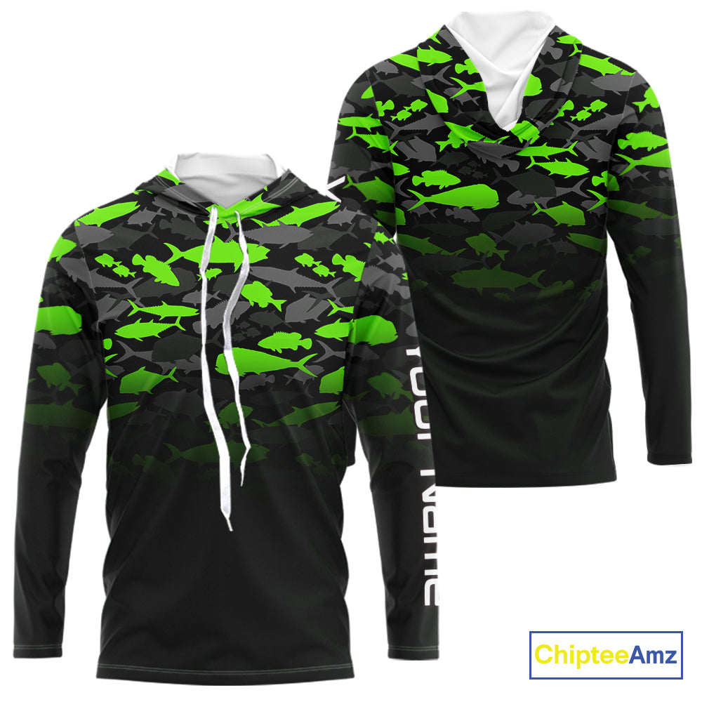 Fishing black and green camouflage UV long sleeve hooded camo fishing shirts Custom fishing apparel NQS10601