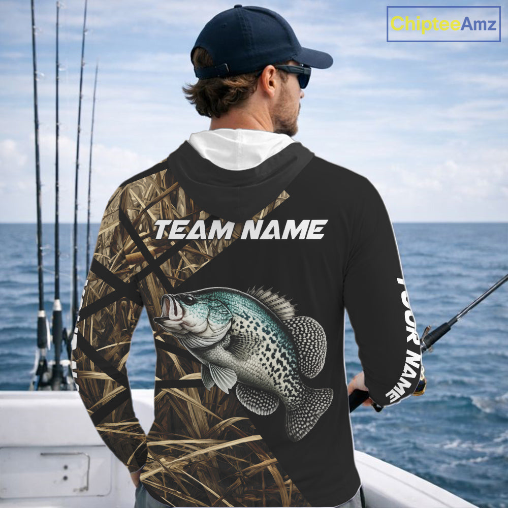 Crappie Fishing Custom Camouflage Fishing Shirts Long Sleeve Hooded, Crappie Fishing Apparel NHT524