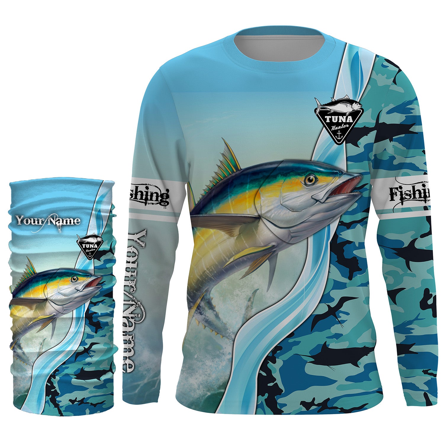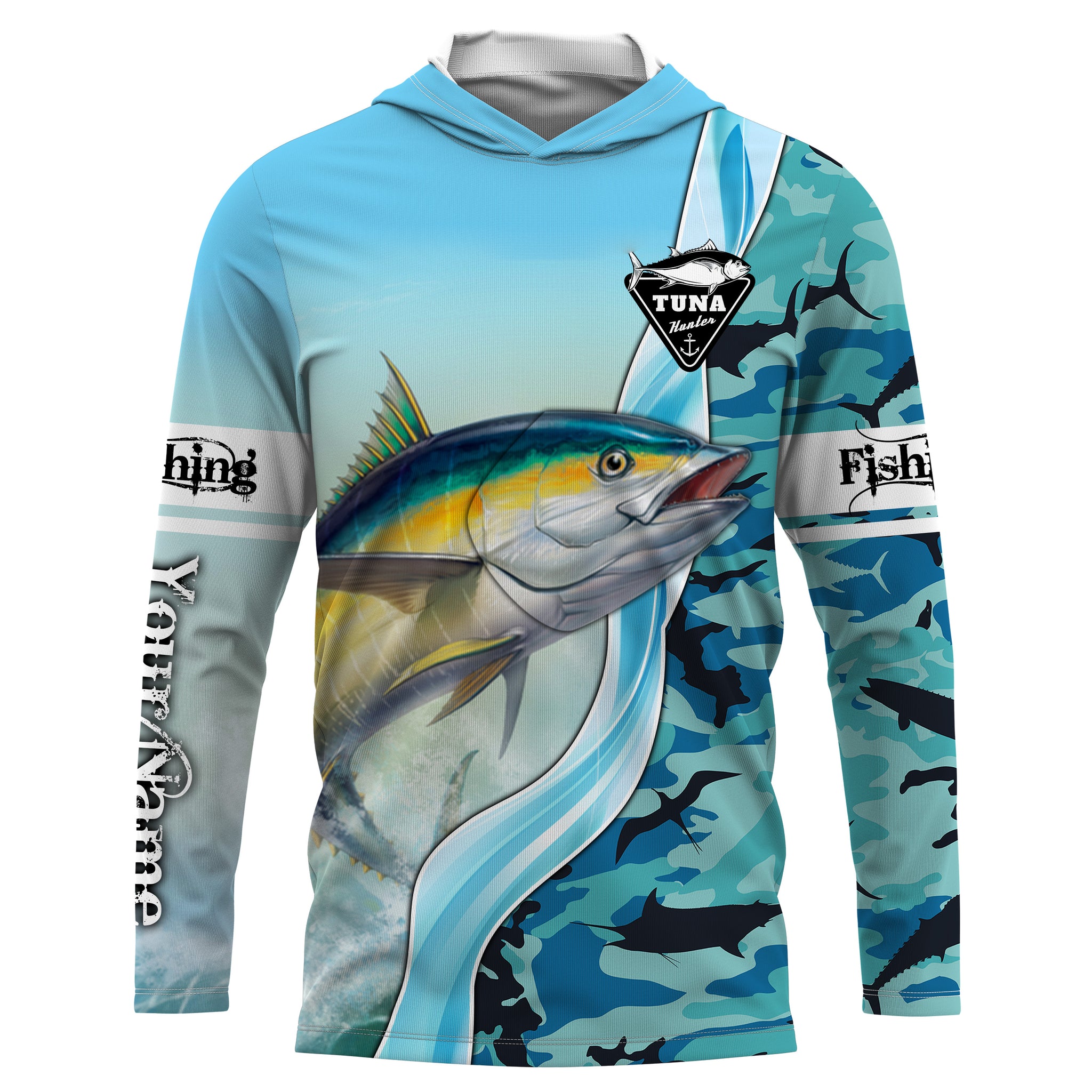 Tuna Fishing Shirts Blue Ocean Camouflage Performance Fishing Shirt, Sun Protection Long Sleeve, Perfect Gift for Fisherman TTN39