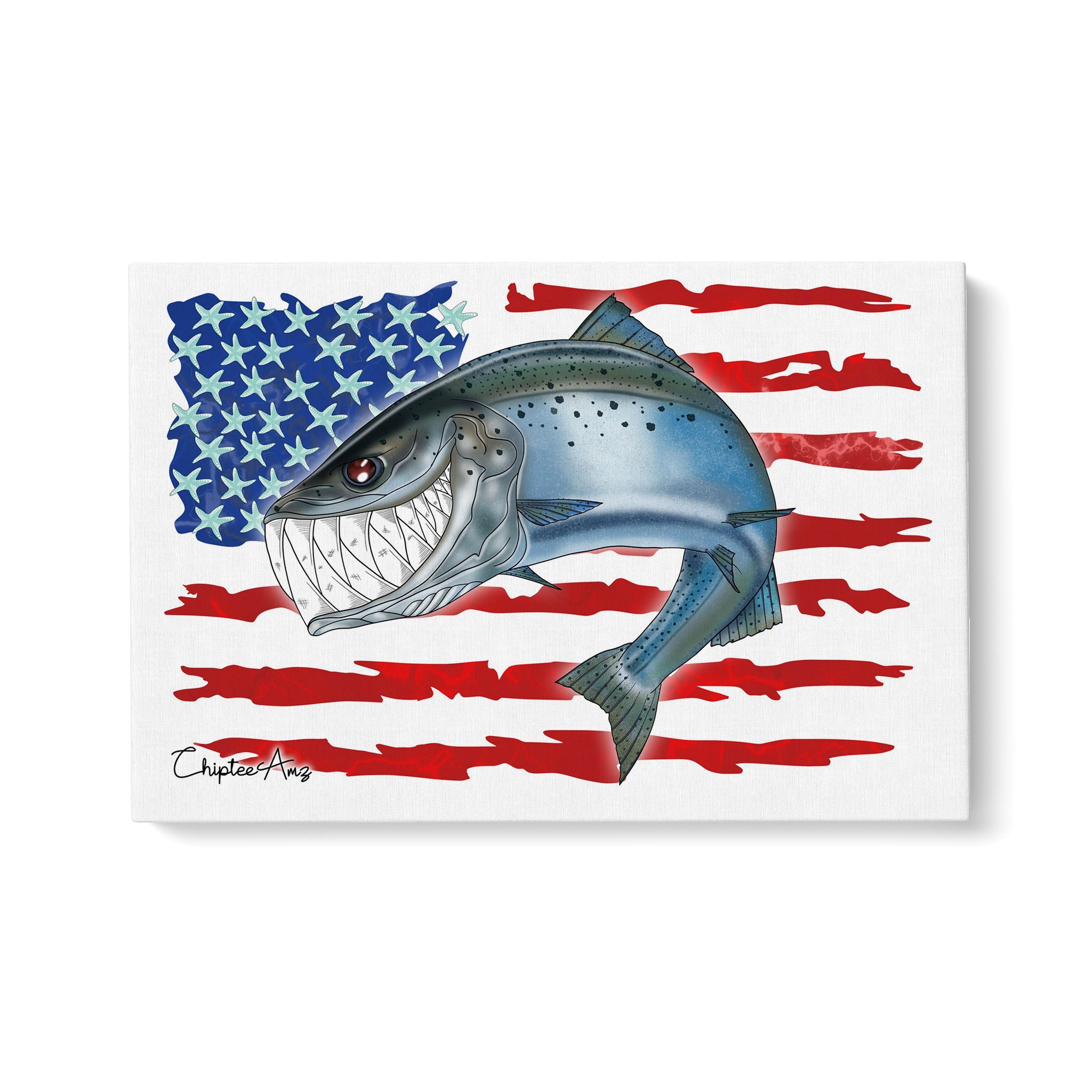 Salmon fishing with American flag ChipteeAmz's art Matte Canvas AT026