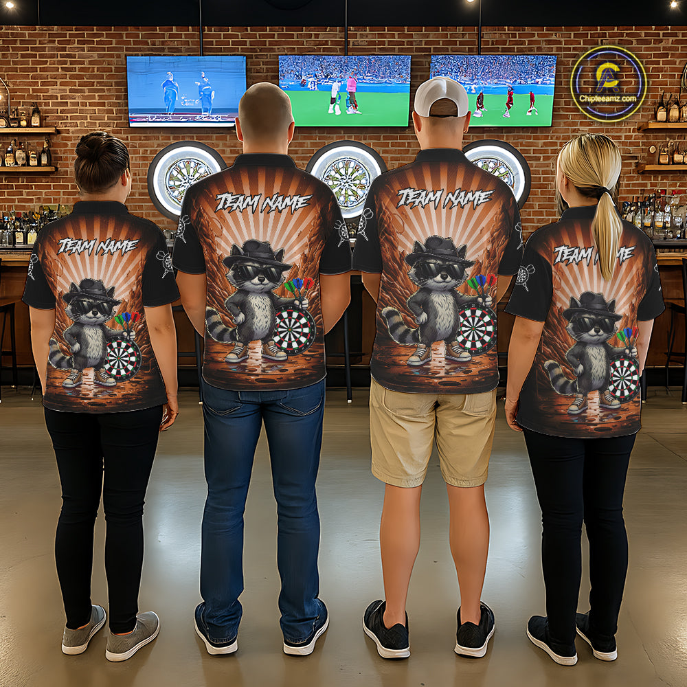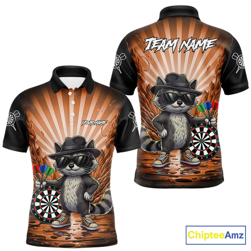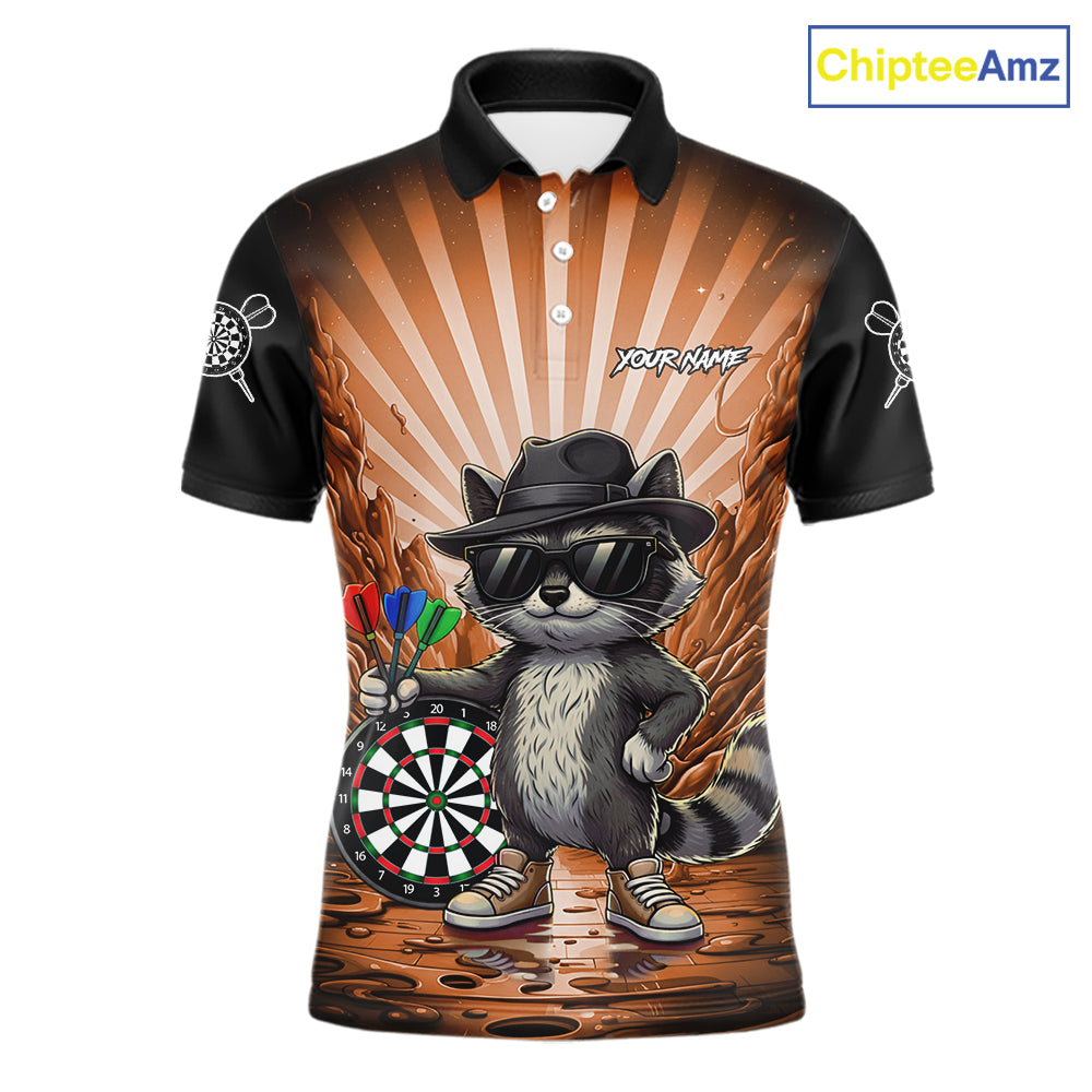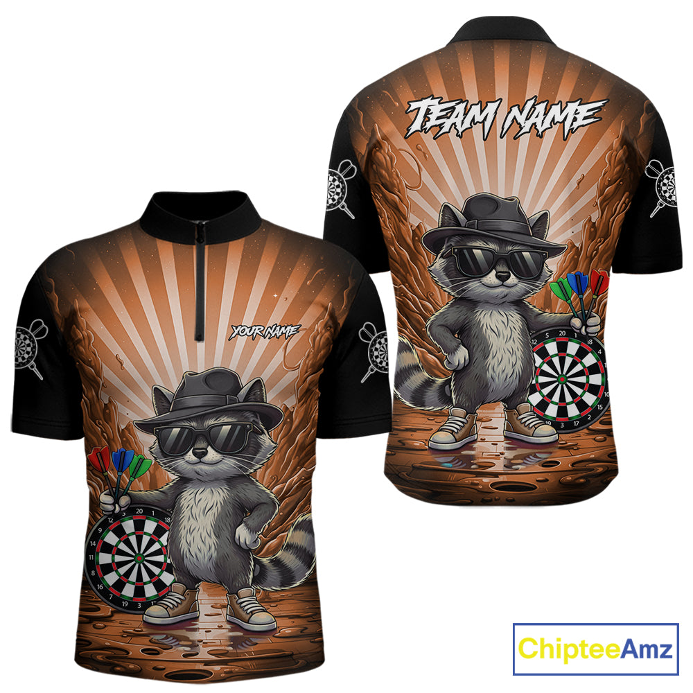 Orange Funny Raccoon Neon Graffiti Darts Shirt For Men Custom Darts Jersey Team Polo & 1/4 Zip TDM6001