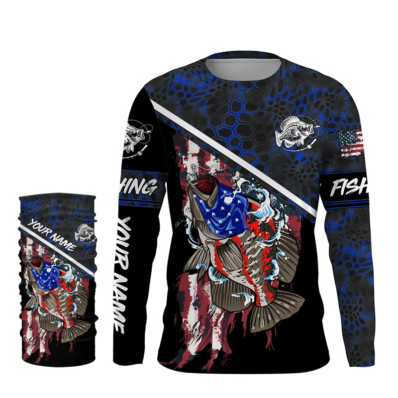 American Flag crappie fishing blue camo Custom Name UV Protection Fishing Shirts NQS3650