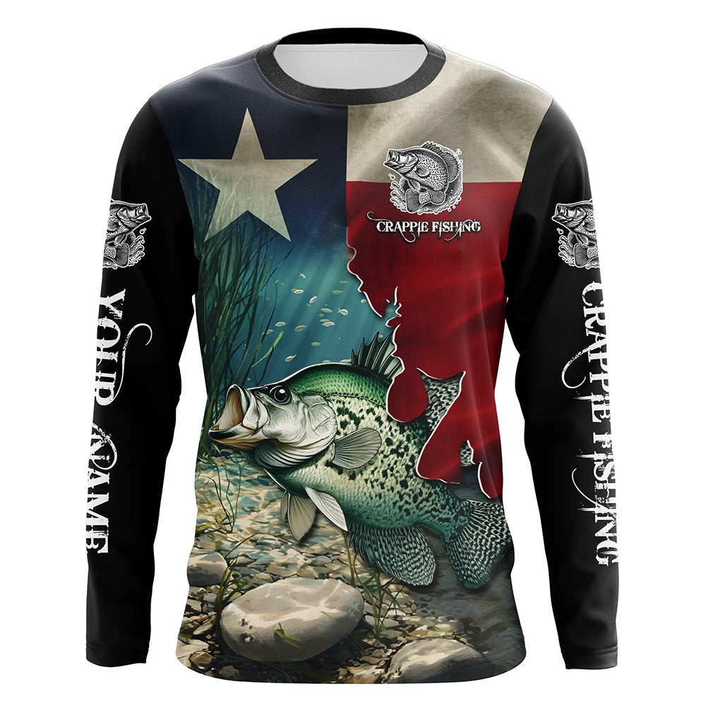 Crappie Fishing 3D Texas Flag Patriotic Customize name Texas Crappie Fishing Shirts NQS531