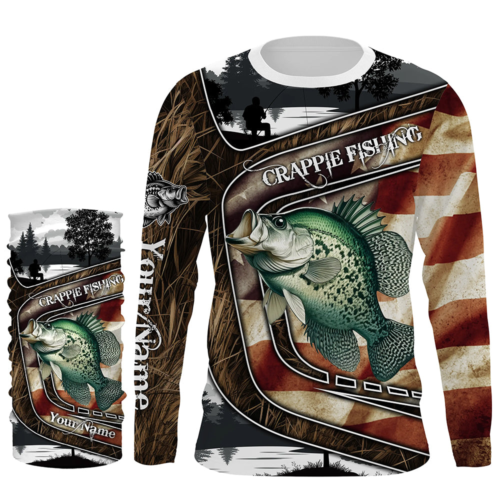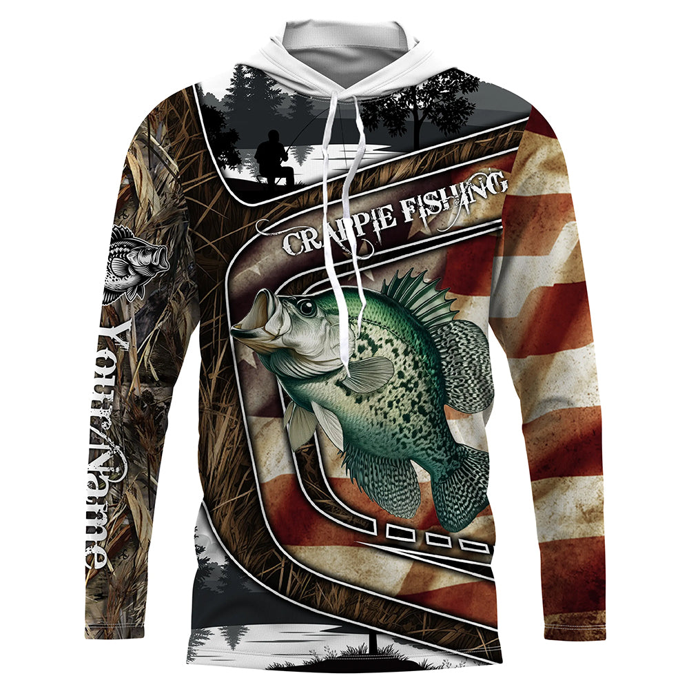 Crappie Fishing camo American flag patriotic Customize name Crappie long sleeve fishing shirts NQS4858