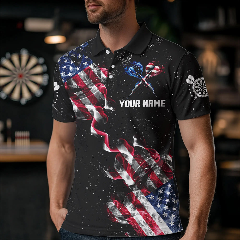 Custom US Flag Smoke Men's Darts Shirt With Pocket, Patriotic Darts Jersey TDM3455