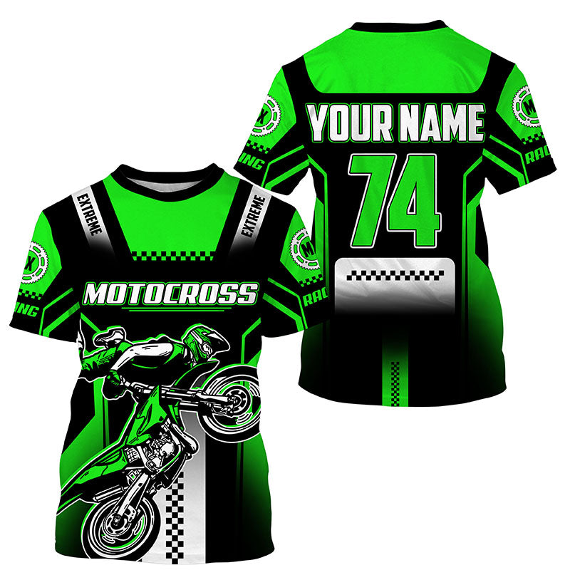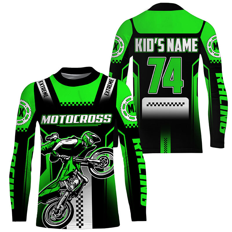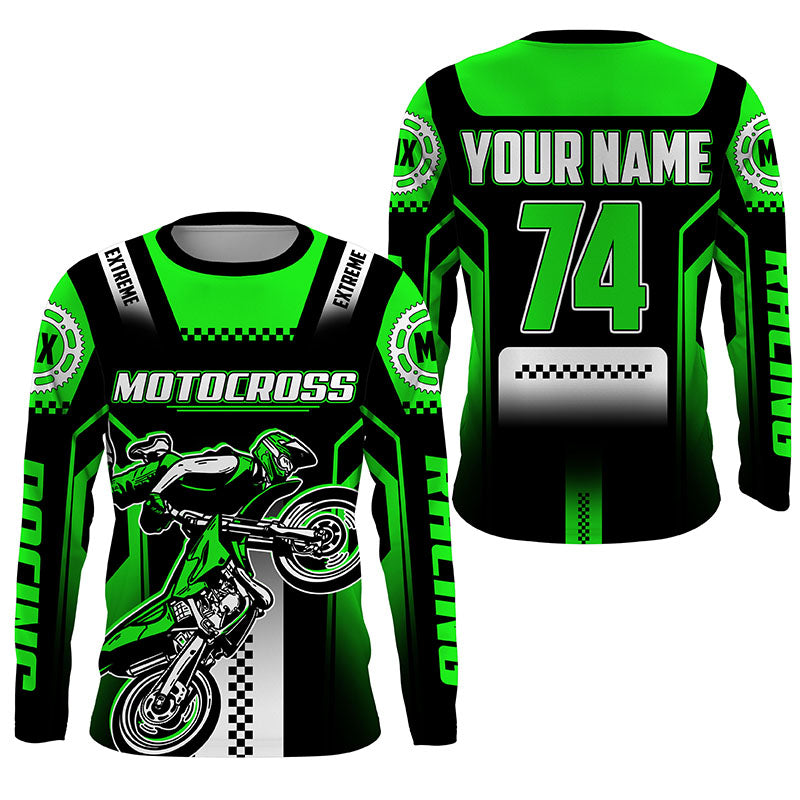 Personalized green Motocross jersey UPF30+ youth&adult dirt bike riding off-road extreme MX shirt PDT256