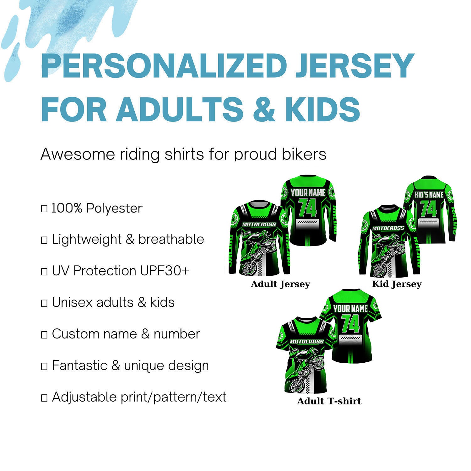 - PERSONALIZED RIDING JERSEY: This super cool shirt is exactly what all bikers are looking for. Add your name/number to make it a unique one that bears your own imprints.