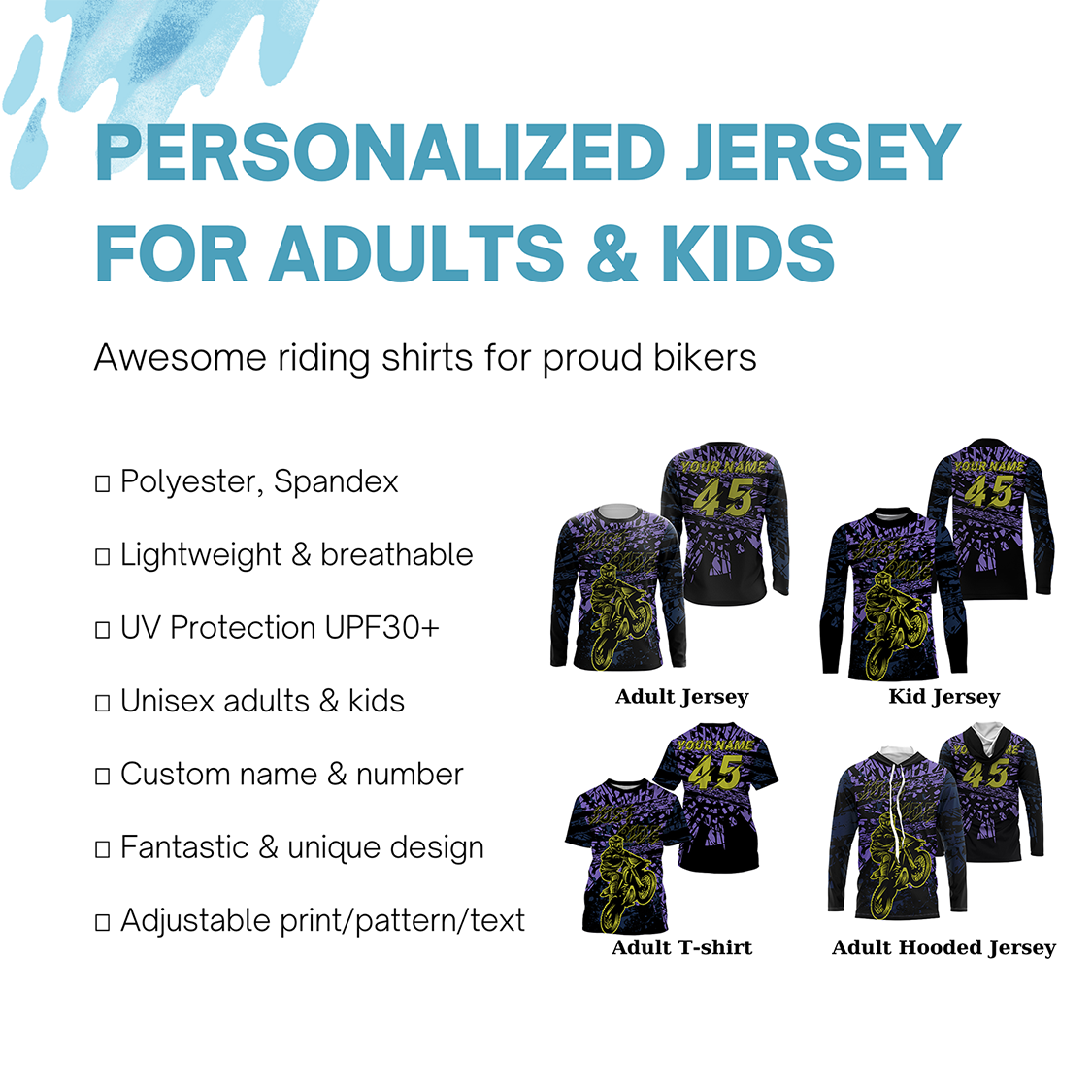 • PERSONALIZED RIDING JERSEY: This super cool shirt is exactly what all bikers are looking for. Add your name/number to make it a unique one that bears your own imprints.
