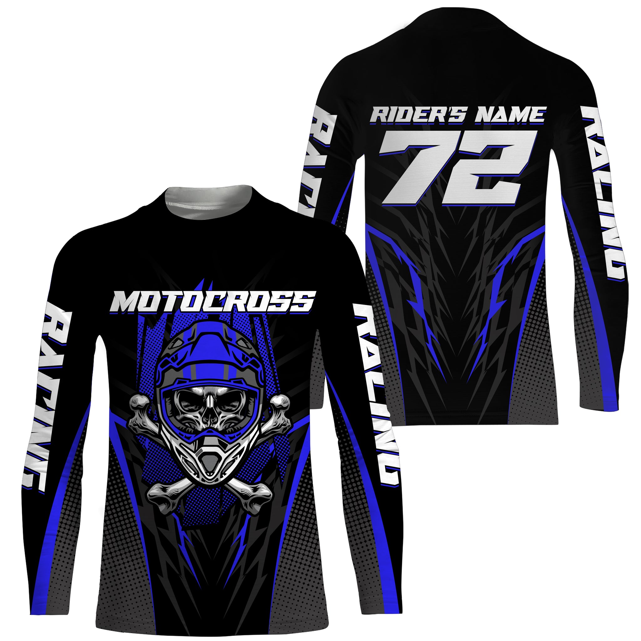 Skull MX Jersey Blue Personalized UPF30+ Kid Women Men Dirt Bike Shirt Off-Road Jersey MX Racing PDT667