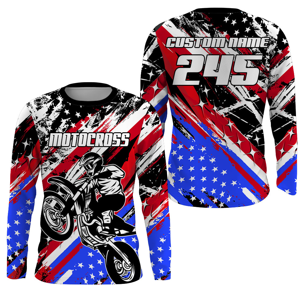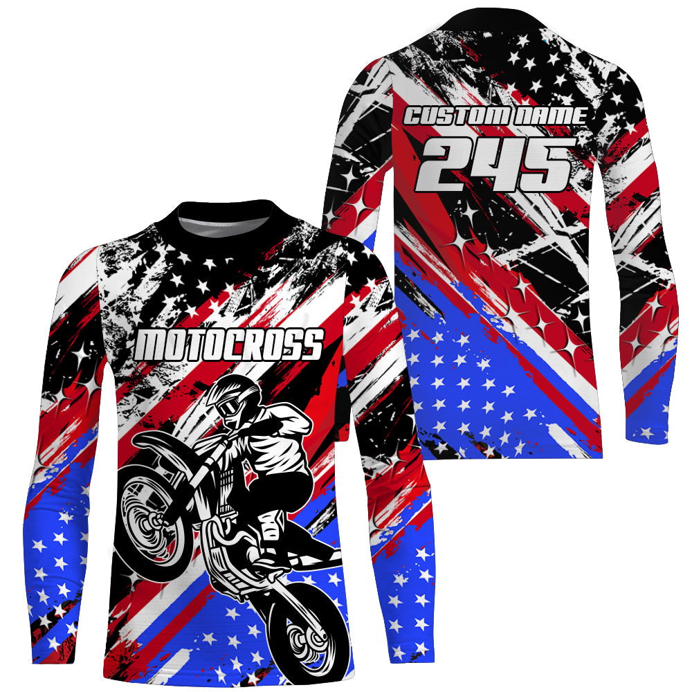 USA Flag Motocross Jersey Kid Men UPF30+ Custom Dirt Bike Shirt MX Racing Off-Road Motorcycle PDT626