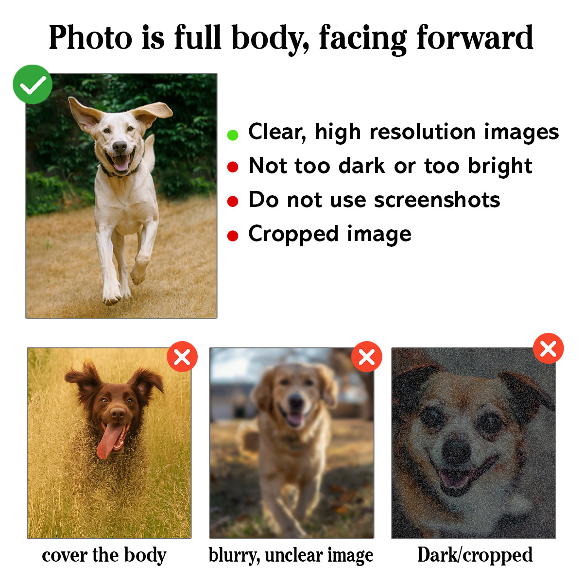 Make sure no part of your dog is cut off, and select a clear, high-resolution photo that is not too dark or too bright.