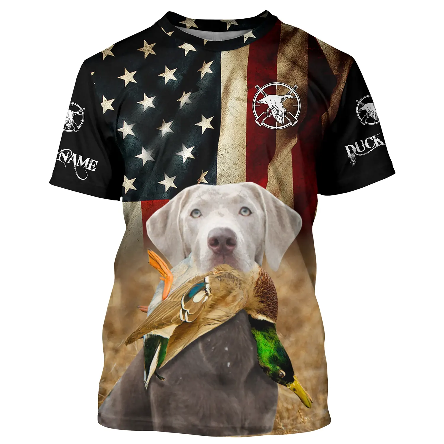 Personalized Silver Labrador Retriever Duck Hunting Dogs American flag Shirts, Hunting gifts FSD3867