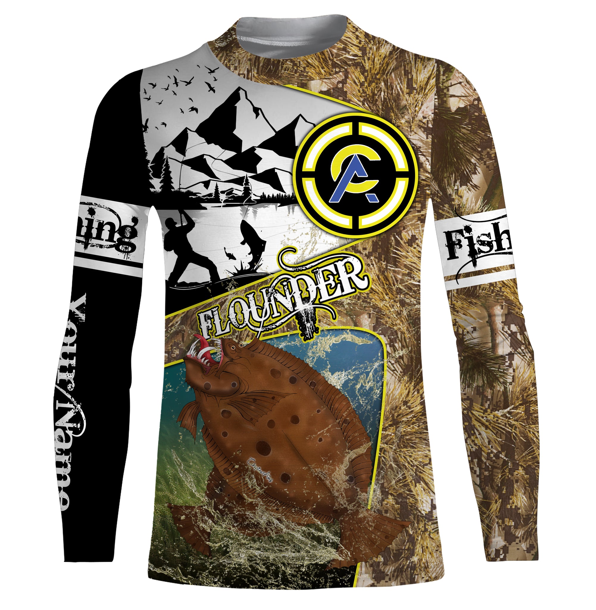 Flounder fishing camo custom name with funny Flounder angry ChipteeAmz's art UV protection shirts AT019