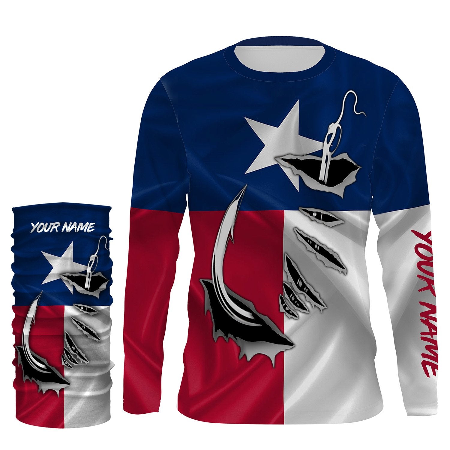 Personalized Texas Shirts 3D Fish hook UV Protection Fishing shirts - Custom Long sleeve performance Fishing Shirts - IPH1891
