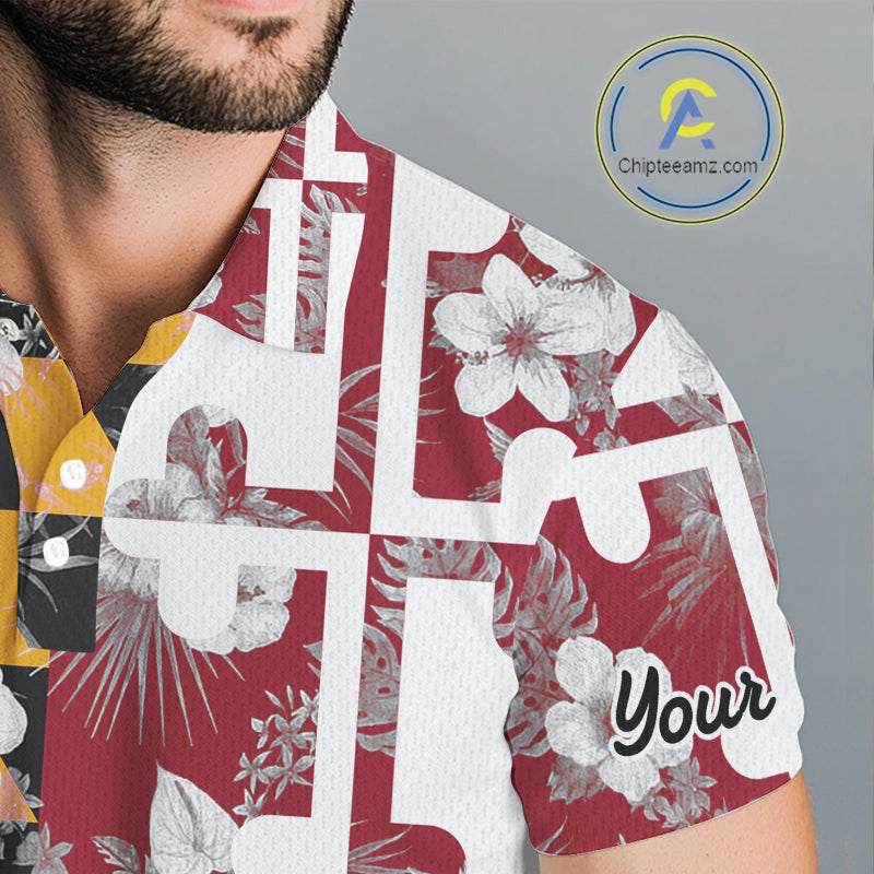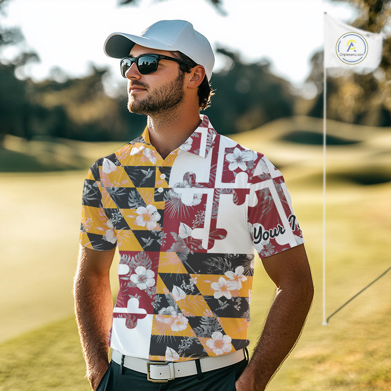 Maryland Flag tropical flower pattern Mens Golf polo shirts Custom mens patriotic golf shirts NQS10064