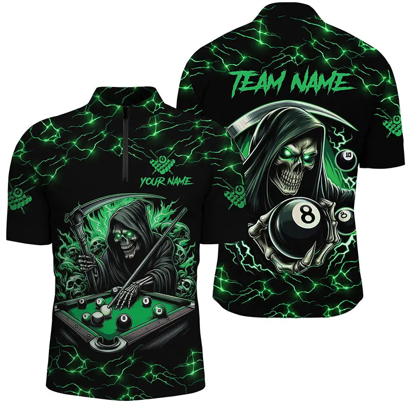 Green Funny Grim Reaper 8 Ball Pool Men Billiard Shirts Custom Name Lightning Billiard Jerseys TDM2827