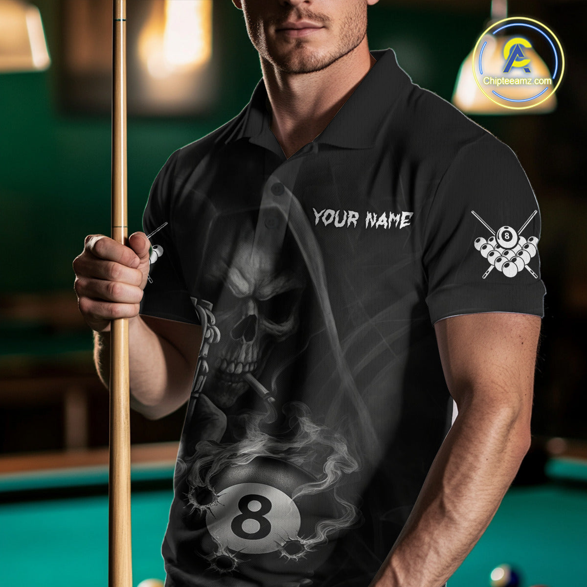 Funny Grim Reaper 8 Ball Smoke Billiard Shirt For Men Custom Pool Jersey, Billiard Team Shirt TDM4898