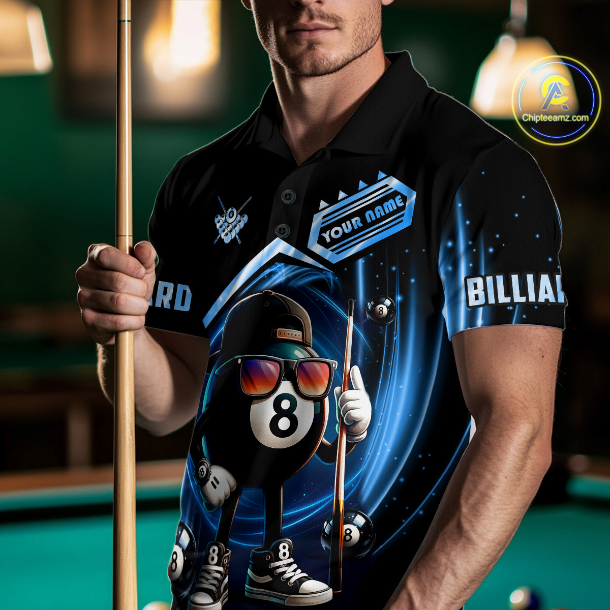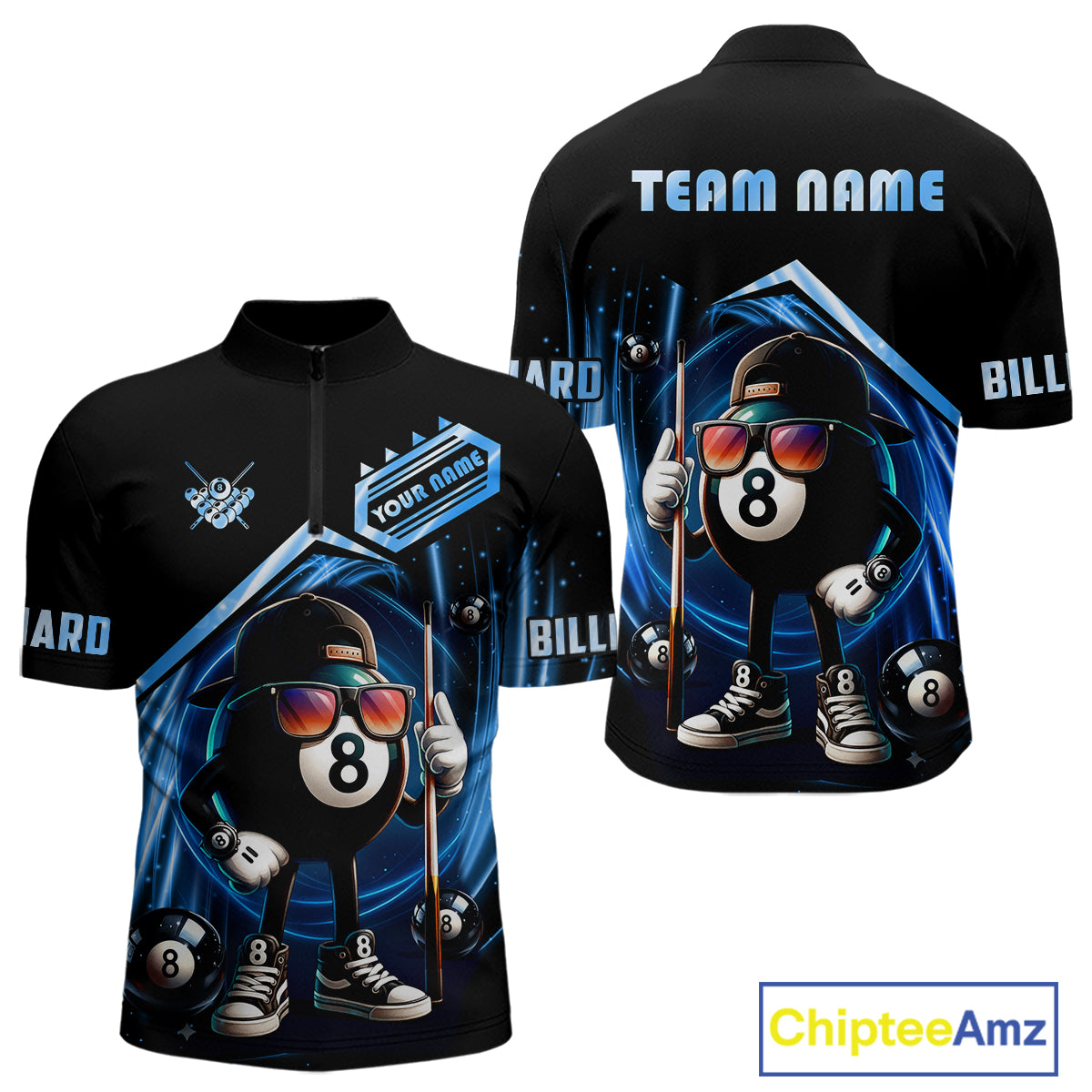 Blue Funny 8 Ball Billiard Shirt For Men Custom Pool Team Shirt, Billiard Jersey Polo & 1/4 Zip TDM5205