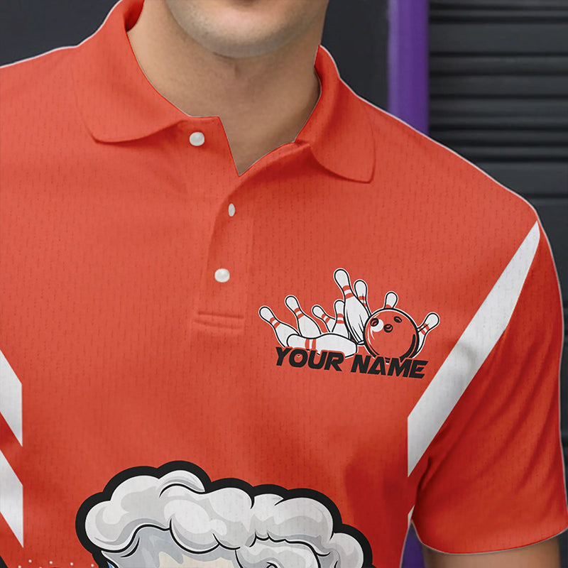 Custom Funny Beer Bowling Polo Shirts For Men, Orange Bowling Team Bowling League Shirt IPHW8931
