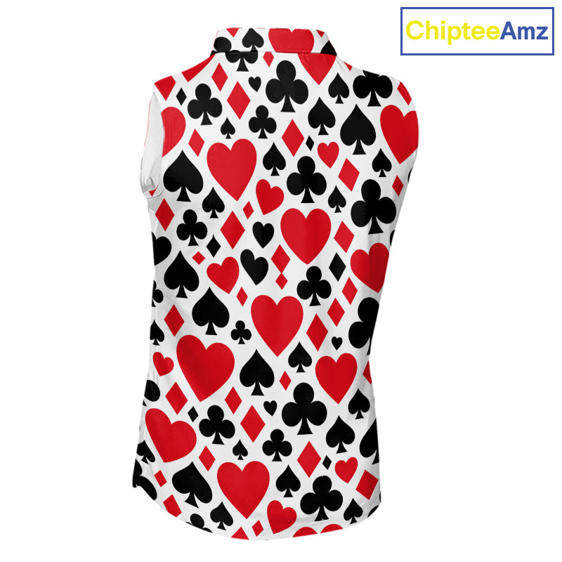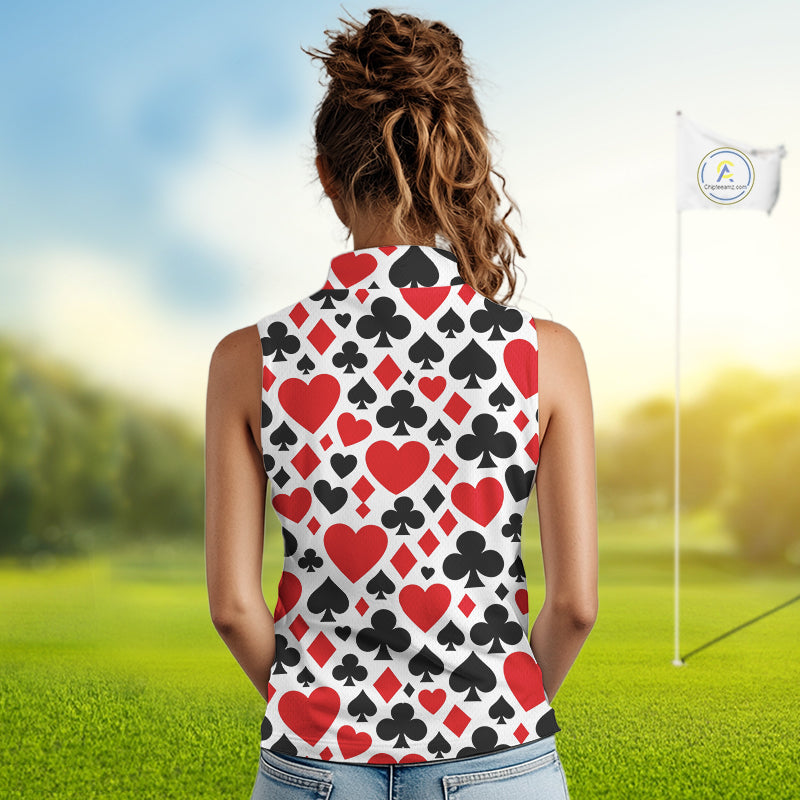 Poker Womens Sleeveless Golf Polo Shirt Custom Name Funny Golf Top For Team, Golfer Gift For Ladies NHN0189