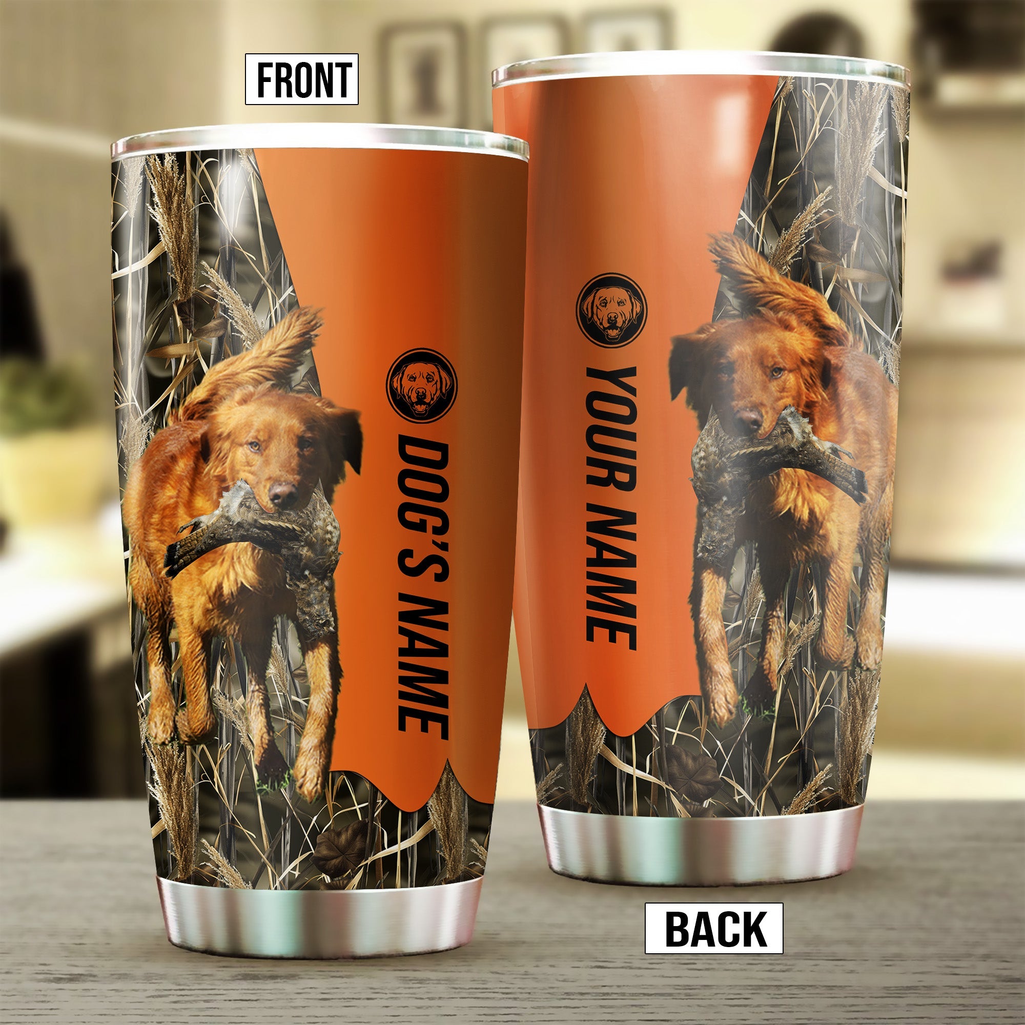 Red Golden Retriever Birds & Deer shed Hunting Dog Custom name Stainless Steel Tumbler Cup FSD4293
