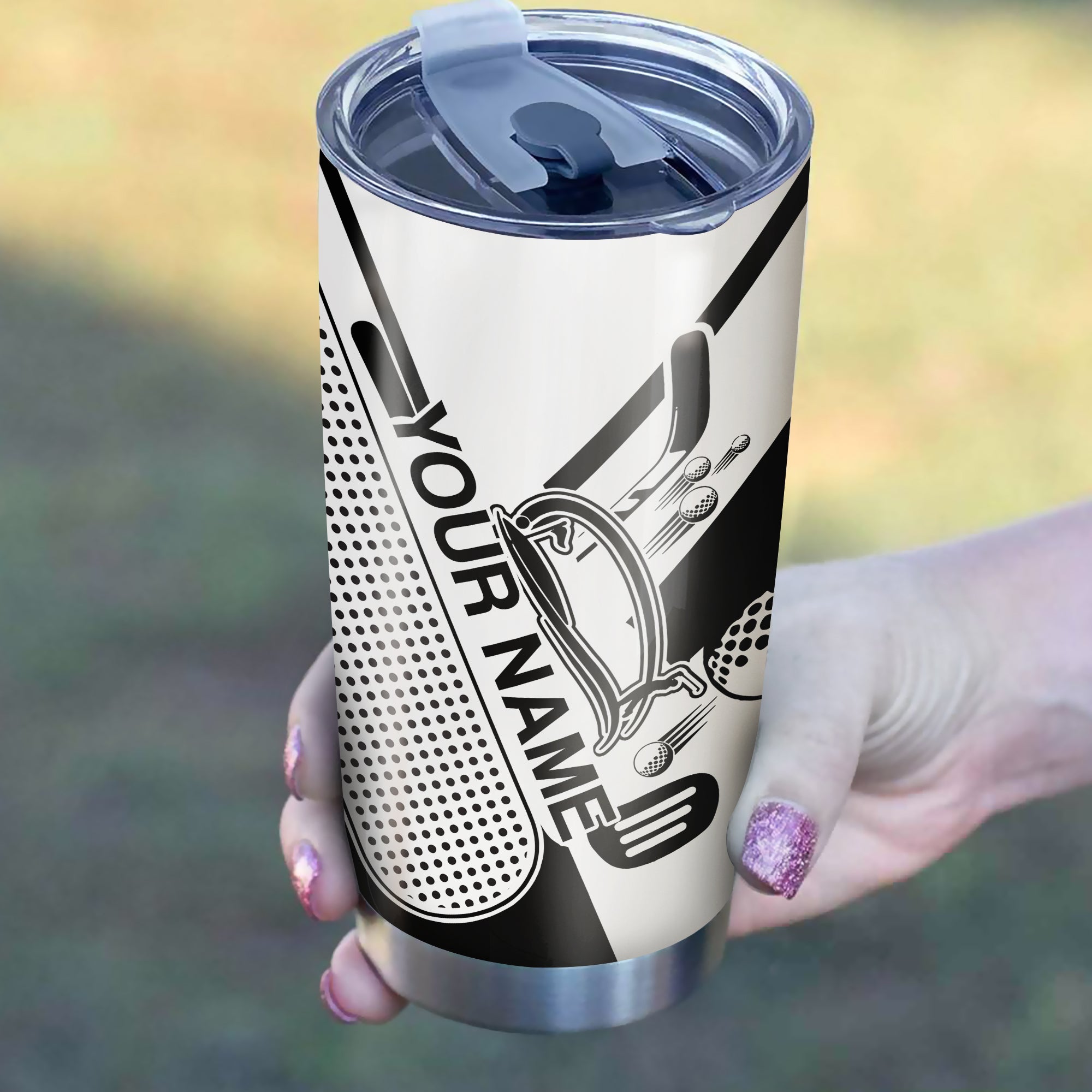 Golf club black & white tumbler Custom name Stainless Steel Tumbler Cup - personalized golf gifts NQS3478