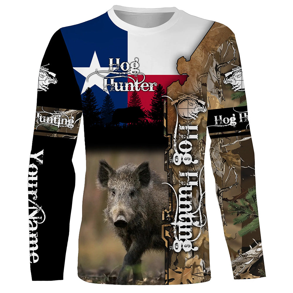 Wild Hog Hunting Texas Flag Camo Custom Name Shirts, TX Hog hunting shirt for hunter FSD332