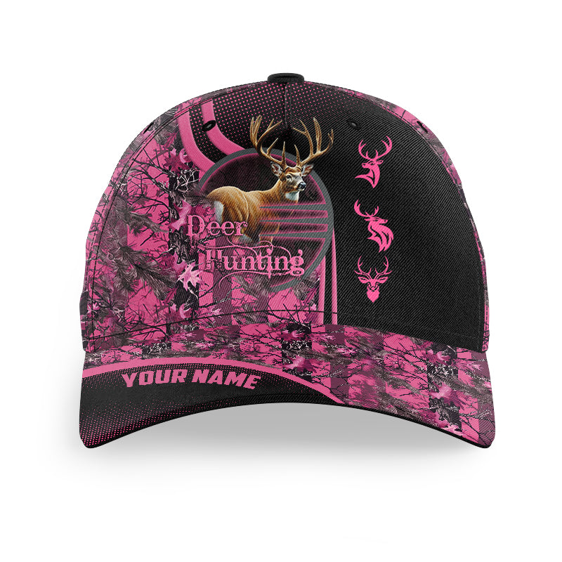 Custom Name Deer hunting Pink camo Hat Adjustable Unisex Hunting Baseball hat FSD3139
