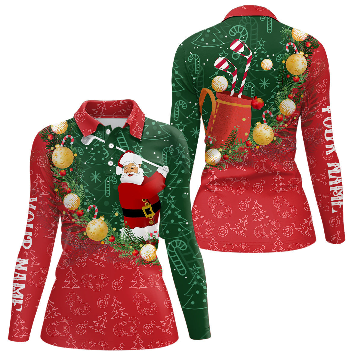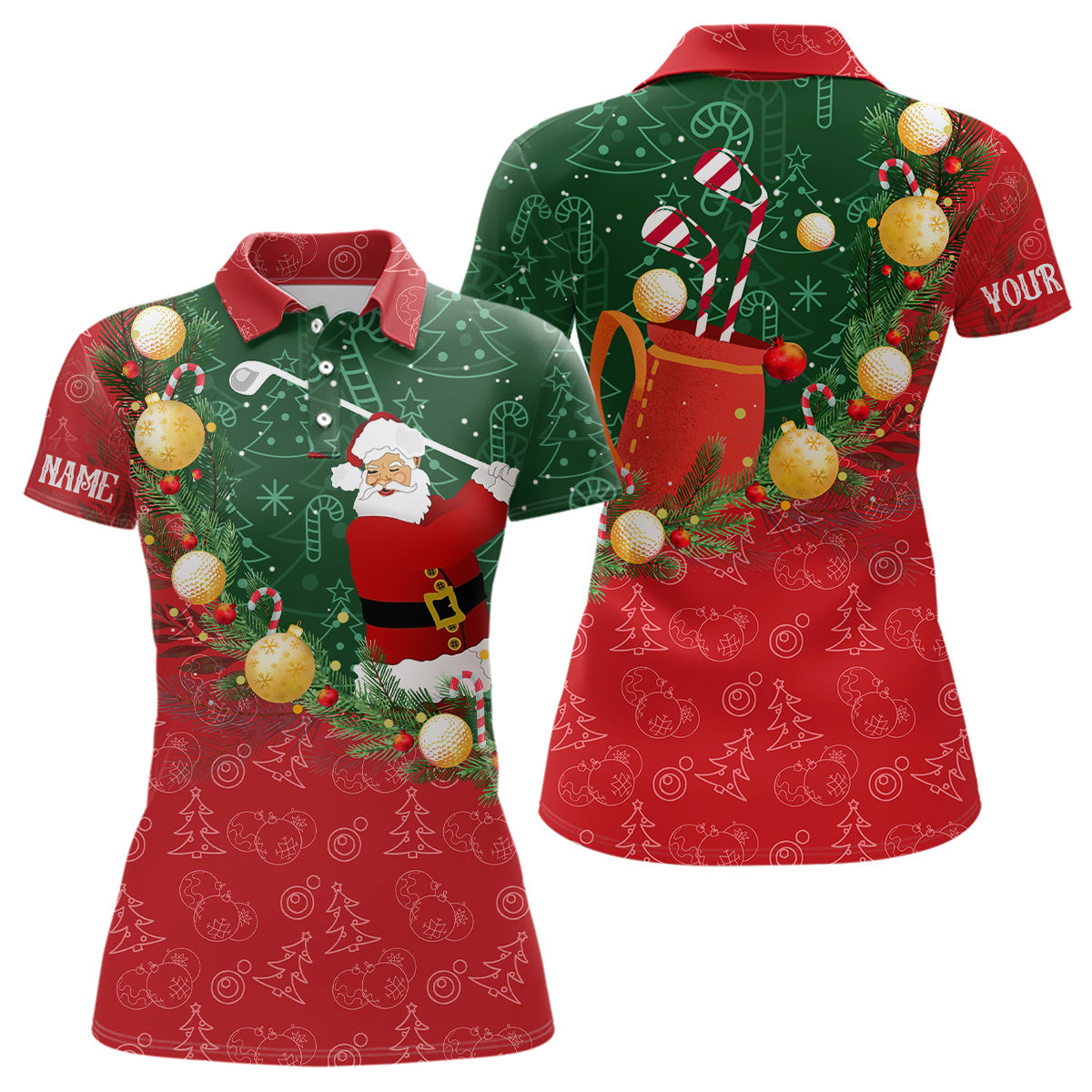 Christmas Santa Playing Golf Womens golf polo shirts Custom Christmas golf outfit For Women Golf Gifts NQS8737