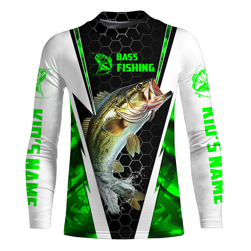 Personalized Bass Fishing Sport Jerseys, Bass Fishing Long Sleeve Tournament Shirts | Green Camo IPHW4403