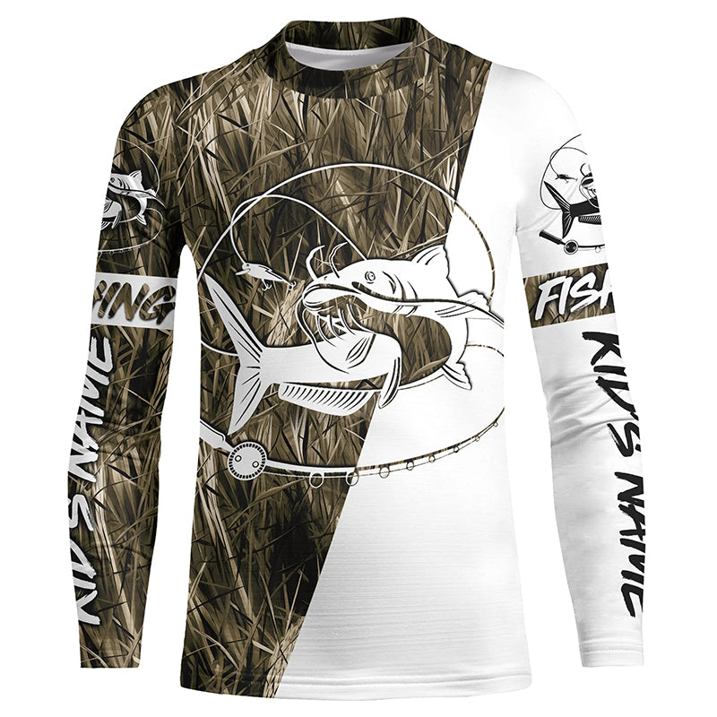 Catfish Fishing Grass Camo Custom Long Sleeve Fishing Shirts, Catfish Tournament Fishing Jerseys IPHW5778