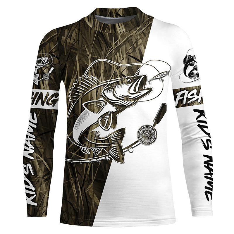 Walleye Fishing Grass Camo Custom Long Sleeve Fishing Shirts, Walleye Tournament Fishing Jerseys IPHW6060