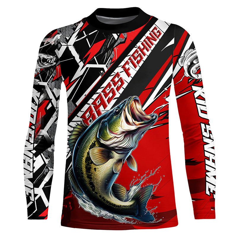 Black And Red Bass Long Sleeve Tournament Fishing Shirts, Custom Bass Fishing Jerseys IPHW6203