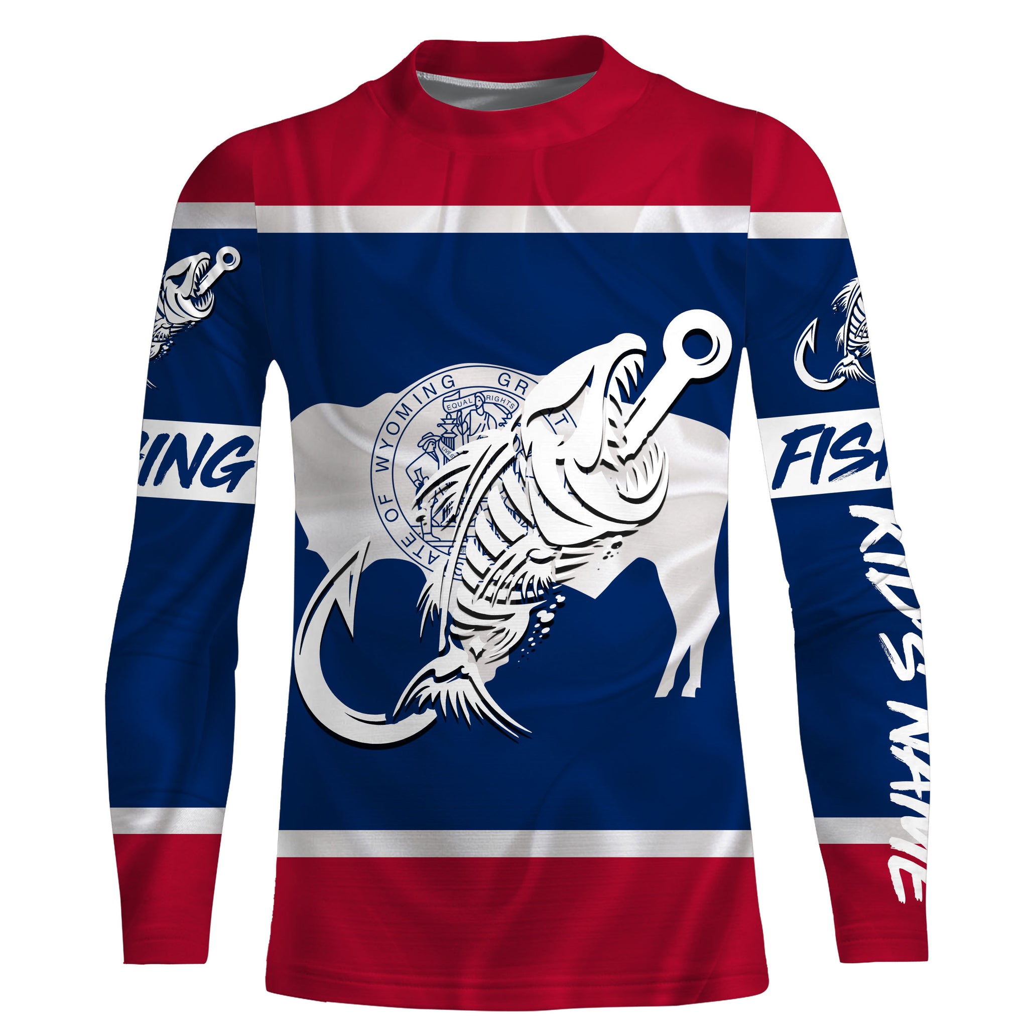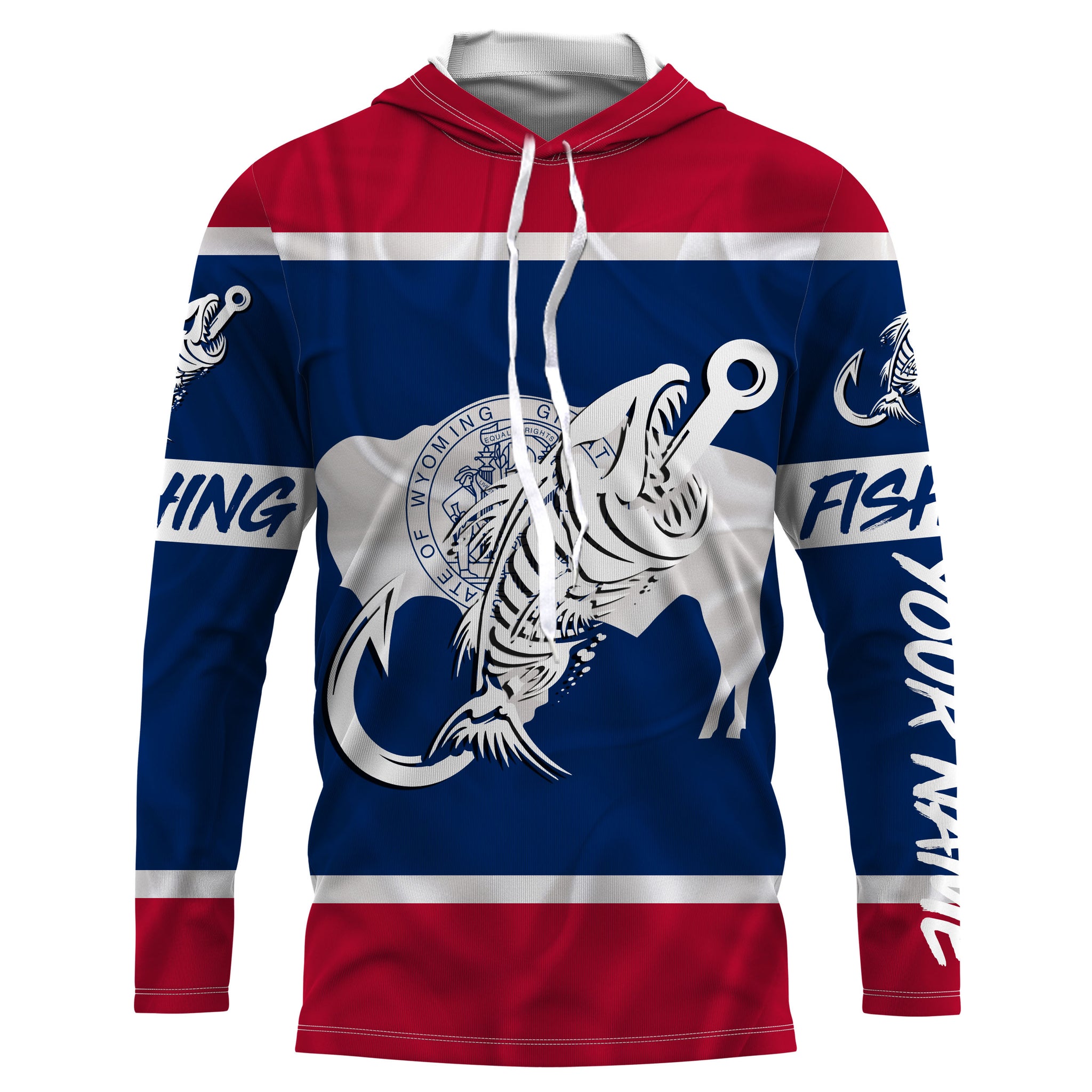 WY Wyoming Fishing Flag Fish hook skull Custom sun protection fishing shirts for men, women, kid NQS3411