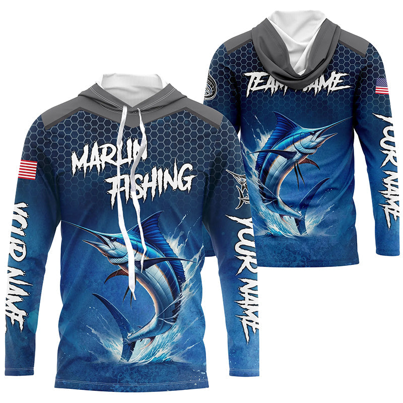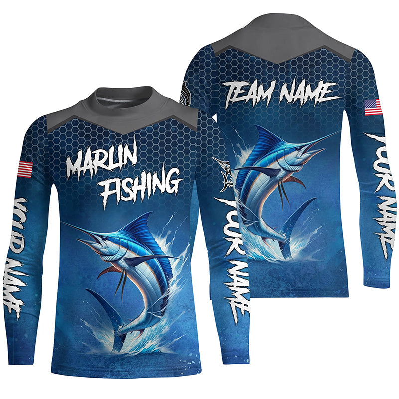 Blue camo Marlin fishing Custom performance long sleeve team Marlin fishing tournament shirts NQS8239