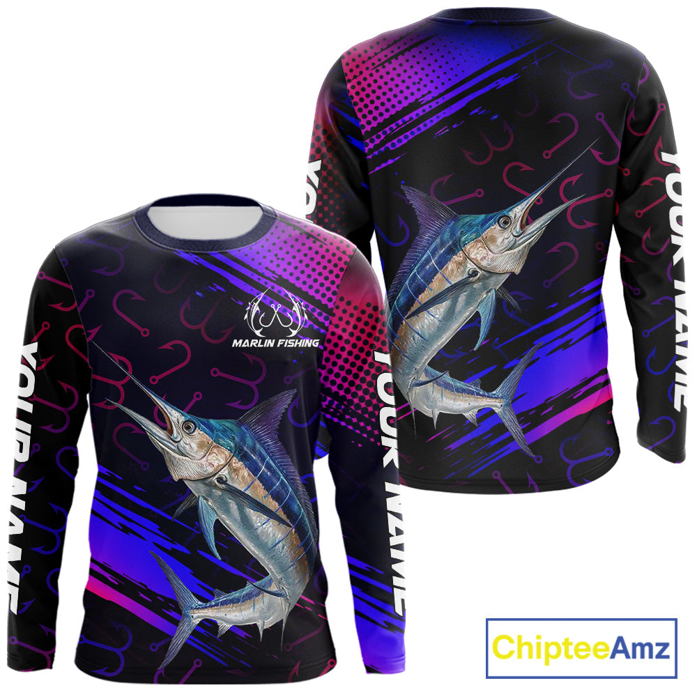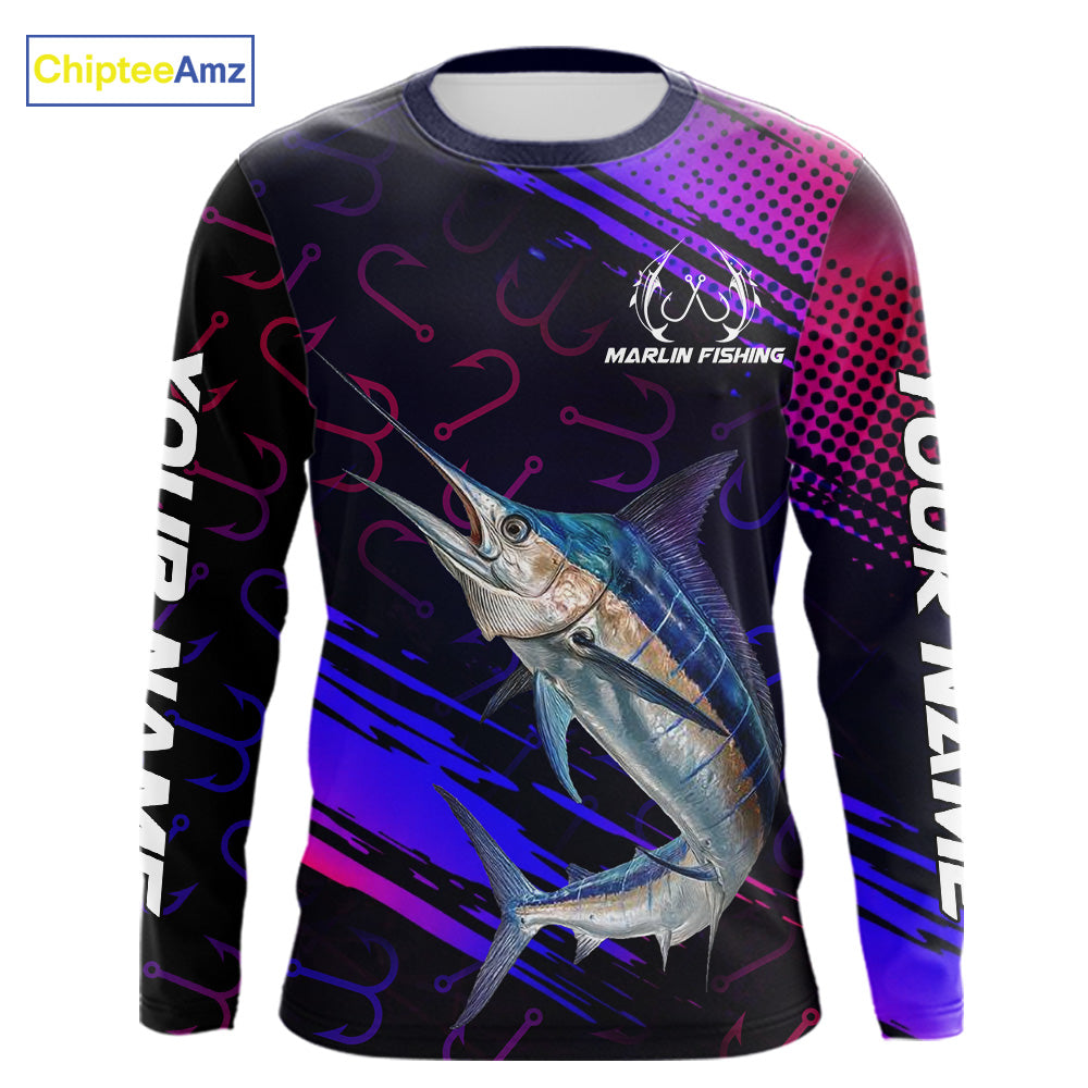 Discover the ultimate in saltwater fishing apparel with our Custom Marlin Fishing Shirts Fish Hooks Long Sleeve Performance Shirt, Marlin Fishing Jersey, designed to elevate your outdoor experience with maximum comfort and protection.
