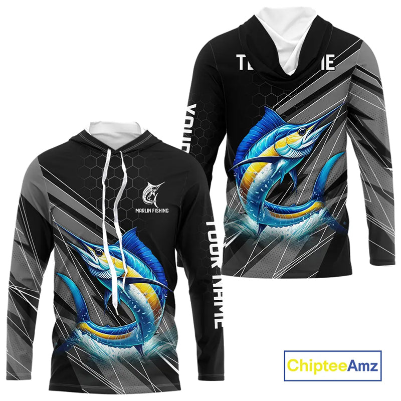 Personalized Black camo Marlin Fishing Jerseys, Marlin Long Sleeve Fishing Tournament Shirts NQS11035