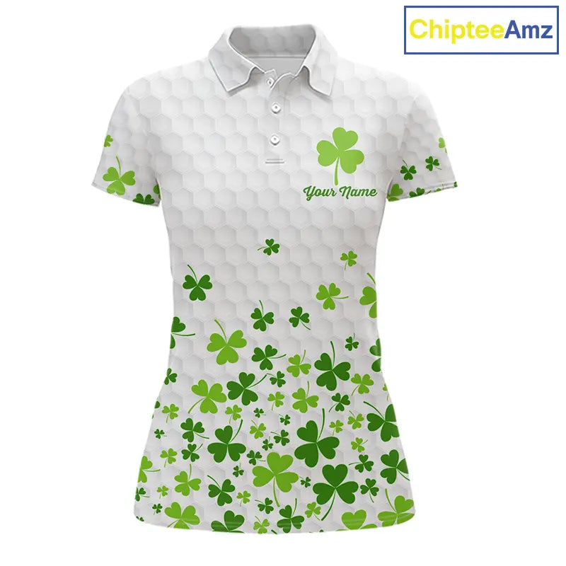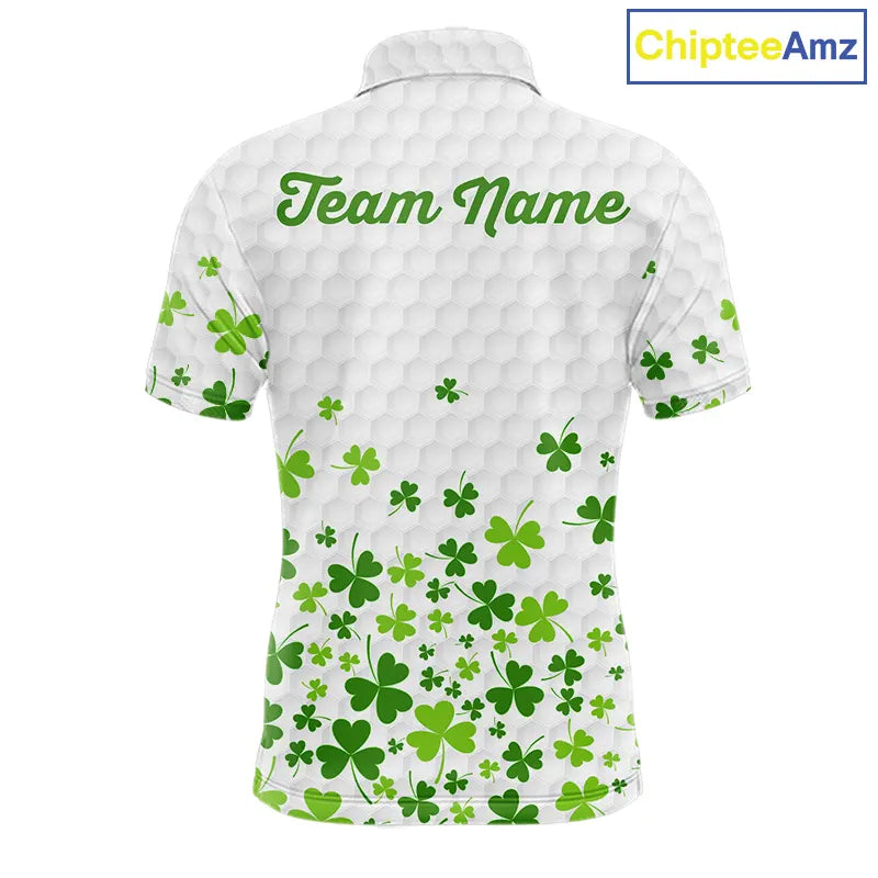 Custom Green shamrock pattern matching golf shirt for couples custom St. Patrick's day golf outfit NQS11610
